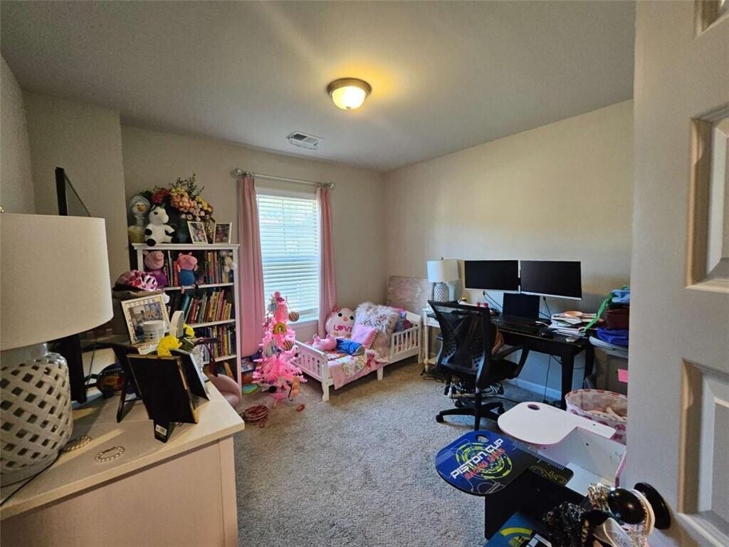 Beautiful,less than 5-year-young,single-family home for lease in a highly desirable South Atlanta community. This like-new residence features an unfinished basement and a thoughtfully designed open floor plan. The main level welcomes you with a wide,elongated foyer and an elegant formal dining room with coffered ceilings. The open-concept living area includes a spacious family room,eat-in dining area,and a well-appointed kitchen featuring a large island,42-inch cabinets with crown molding,and a walk-in pantry. A convenient mudroom-style drop zone off the garage provides space for coats,bags,and everyday essentials. A main-level half bath completes the first floor. Upstairs offers four bedrooms,including a generous primary suite with space for a sitting area or home office,a walk-in closet,and an en suite bath with soaking tub,separate shower,and private water closet. Three additional bedrooms share a full secondary bath,and the laundry room is located upstairs for convenience. Enjoy outdoor living on the large rear deck overlooking a partially fenced backyard. Lawn maintenance-including grass cutting and treatment-is included in the lease,offering true low-maintenance living. Located in a sought-after neighborhood with strong schools,this home offers the rare opportunity to lease a full single-family residence at a competitive price compared to apartments and townhomes. Schedule your private showing today.