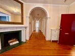 Beautiful one of kind a Back Bay style brownstone with approximately 2,500sf of living space on the 1st floor, steps to the Brookline Reservoir. Property features include 10 rooms with a warm welcoming foyer, formal dining room with coffered ceiling, living room, family room with working fire place, 4 bedrooms, kitchen with butlers pantry, 2 full baths, 4 season sunroom and laundry in unit. Finishes include period details with dramatic 12ft ceilings with crown moldings throughout, hardwood flooring. This unit includes 2 off street parking spaces. Located in Brookline Hills near Washington Sq. and Brookline Village, the property resides in the Runkle School District. It's a short walk to the D line, Brookline High as well as public transportation to Longwood hospitals. *****Rent includes hot water & 2 parking spot*******