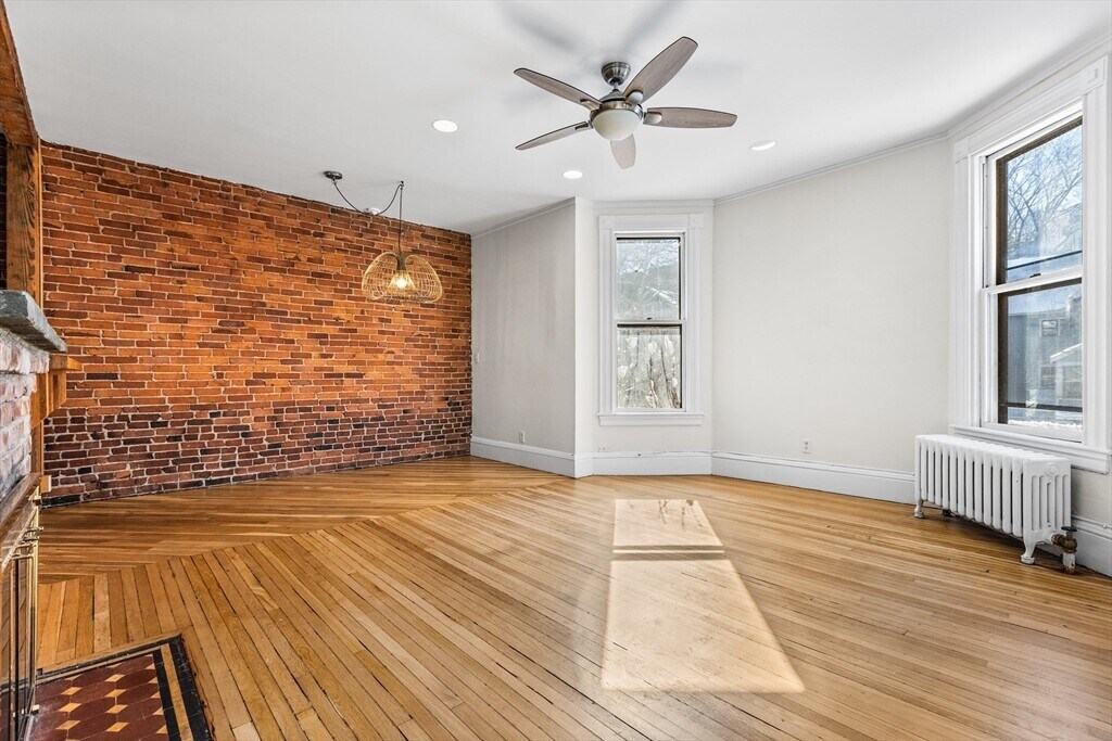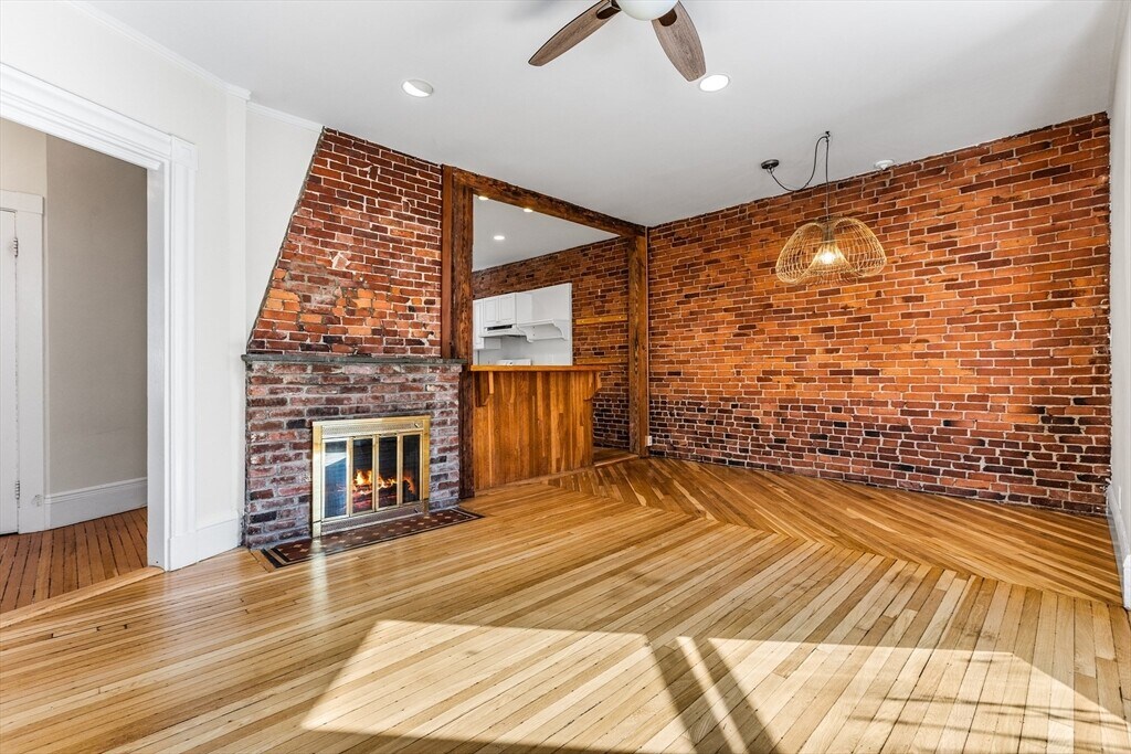 Bright and charming 2-bed,1-bath condo in a converted Victorian just steps from Washington Square and Coolidge Corner. Big windows overlook mature trees,giving the home a peaceful feel. Inside,you’ll find a spacious layout with a sunny living room and a welcoming entry with a coat closet. The dining area opens to a warm,character-filled kitchen with exposed brick,a butcher-block breakfast bar,gas cooking,and new appliances. A completely renovated bathroom rounds out this home. Enjoy exclusive covered parking,shared outdoor space for gardening or relaxing,and extra basement storage. One block to the Green Line (C) and close to Driscoll School,Griggs Park,shops,and restaurants. MLS# 73481122