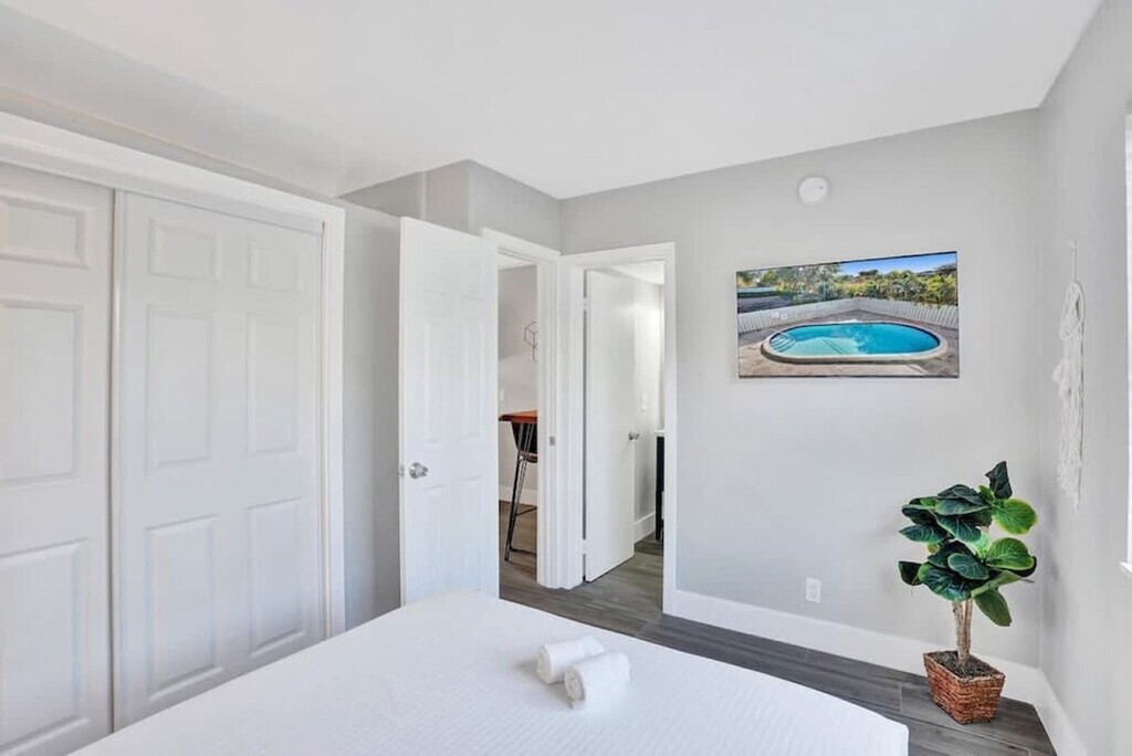The advertised rate of $2,046/month is the lowest available price, based on a 30 day(s) stay with a move-in date of May 10, 2026. Rates vary depending on the duration of stay, season, and other parameters. For exact pricing and additional pricing components, please visit our website and enter your desired move-in and move-out dates. The rate is applicable when billed upfront; it can be higher if billed in multiple payments. Feel at home in this private 1-bedroom, 1-bath apartment in Fort Lauderdale, offering quick access to Fort Lauderdale-Hollywood International Airport, major highways, top restaurants, nightlife, shopping, and beaches. The apartment includes a cozy living area, a fully equipped kitchen, a smart TV, and Wi-Fi. Guests can also enjoy a shared outdoor pool. Enjoy the convenience of free on-site parking (1 space per reservation). This centrally located apartment is just minutes from Fort Lauderdale Beach and downtown, with easy access to Las Olas Boulevard, Hugh Taylor Birch State Park, and the area’s top dining and nightlife spots. Discover Fort Lauderdale’s scenic canals via water taxi. Nearby attractions include Casablanca Café, Coconuts, Takato, El Vez, Fort Lauderdale Beach, Las Olas Boulevard, Bonnet House Museum & Gardens, and LuLu’s Bait Shack. No parties, gatherings, or events are allowed, and violations will result in a $500 fine and immediate removal without refund. Quiet hours are from 10:00 PM to 9:00 AM, and any noise complaint may result in a $500 fine and/or cancellation without refund. No indoor smoking is allowed (including cigarettes, vaping, hookah, cigars, or cannabis). Outdoor smoking is permitted at least 10 feet from the building, with doors and windows closed, and violations will result in a $500 fine and may result in immediate cancellation without refund. Tampering with cameras or any connected devices will result in a $1,000 fine and may result in immediate cancellation without refund. Pets must be approved before booking, and guests are responsible for any damage caused by pets. Guests must send a photo of a valid ID that matches the reservation name before receiving check-in instructions and must sign the rental agreement and check-in form before arrival. The property is equipped with exterior security cameras for guest safety, which record audio and video but do not monitor private areas. Please note that the partner will place a $350 refundable authorization hold on a credit or debit card about 72 hours before arrival for security. If damages or policy violations occur, related charges may apply; otherwise, the hold is released after checkout and processed within 5-7 business days. [SI]