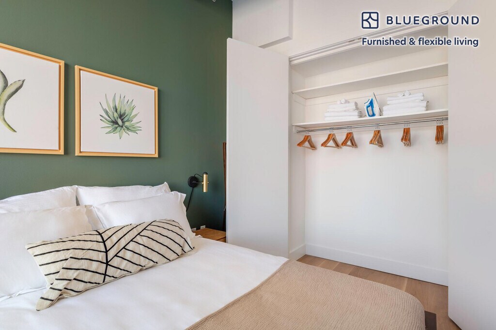 Feel at home wherever you choose to live with Blueground. You’ll love this charming Tribeca furnished one bedroom apartment with its modern decor, fully equipped kitchen, and cheery living room with great high floor views. Ideally located, you’re close to all the best that New York has to offer! (ID #NYC349) The advertised rate of $3,430/month is the lowest available price, based on a 2 month(s) and 14 day(s) stay with a move-in date of December 25, 2025. If you’re looking for a 1-year stay, the rate is $5,670/month. Rates vary depending on the duration of stay, season, and other parameters. For exact pricing and additional pricing components, please visit our website and enter your desired move-in and move-out dates. The rate is applicable when billed upfront; it can be higher if billed in multiple payments. Brokers are welcome to reach out. Were you looking for an unfurnished lease? Try Blueground instead and upgrade from unfurnished to furnished living: - Furnished at rates comparable to unfurnished - No setup or furniture costs - save thousands - Move-in ready - save time, just bring your suitcase Designed with you in mind Thoughtfully designed with bespoke finishes, modern furnishings, and a fully equipped kitchen, you’ll enjoy that “I’m home” feeling with this Blueground apartment. Whether you’re lounging in your beautiful living room streaming the latest and greatest entertainment on the smart TV or premium wireless speaker, or getting some well-earned rest on the superior quality mattress with luxury linens, you’ll fall in love with everything this Tribeca apartment has to offer. This apartment also offers in-floor laundry. Sleeping arrangements Queen Bed, 63in/160cm Amenities Building amenities unique to this one bedroom apartment include an on-site: - Basketball Court - Doorman - Dryer of floor - Elevator - Washing machine on floor - Lounge - Pets allowed - Playroom Arrival and ongoing support The entire apartment is yours to enjoy! Throughout your stay, you’ll have access to our Client Experience team through the Blueground App. You can schedule additional cleanings, submit maintenance requests, and view our neighborhood recommendations with just a few taps. We’ll share all details upon confirmation of your stay. Ideally Located This furnished apartment is in the vibrant neighborhood of Tribeca. Formerly an industrial center, nowadays it is considered an artists' mecca, and one of the most exclusive neighborhoods in the city. The award-winning public and private schools draw families to nest nearby. Locals can be seen strolling along the Hudson River or dining at a wine bar. Quaint cafes and inviting green park space make this a great place to call home. Tribeca is one of the more well-rounded and well-connected neighborhoods in Lower Manhattan. By subway, the Financial District is only 10 minutes away. Other things to note Building amenities may have an extra cost. This Blueground apartment has flexible lease options, allowing you to book it for one month, a year, or more. Pets are welcome, though weight limits and breed restrictions apply and may incur fees. Brokes CYOF. We take great pride in ensuring every photo displayed is shot in our own units with our actual furnishings. That said, we regularly refresh our decor and furniture arrangement, which may differ from what’s pictured. [SI]