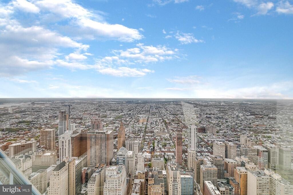 THE VIEW BELONGS TO YOU - Enjoy breathtaking panoramic skyline views from this sprawling three bedroom plus den, four and a half bath PENTHOUSE RESIDENCE in the sky. Soaring 54 stories above the city, this one-of-a-kind architectural masterpiece boasts over 2,650 square feet of magnificent living space and offers some of the most incredible skyline, sunset and river views you won't find anywhere else. The living and dining areas feature dramatic ceiling heights, gleaming hardwood floors, and walls of architectural windows which flood your space with an abundance of light. The chef's kitchen showcases marble countertops, SNAIDERO cabinetry, and SUB-ZERO and MIELE appliances. The main bedroom suite offers picture perfect views, an oversized walk-in closet and two separate marble bathrooms. The lavish main bathroom boasts double floating sink vanities, an oversized soaking tub and a large glass enclosed shower. The second and third bedrooms are both generously proportioned and feature ample closet space and ensuite bathrooms. A bespoke den area offers additional space perfect as a work from home office. A multitude of designer details, sophisticated built-ins, and approximately 2 years remaining on the tax abatement complete this former developer's model home at Two Liberty Place. Association fees include a 24-hour concierge, chauffeur-driven car service, state-of-the-art fitness center, endless pool, steam showers and saunas, and a residents' lounge. Perfectly situated in the center of it all, this residence is steps away from fine dining, one-of-a kind shopping, world-renowned cultural destinations, and exciting nightlife. PENTHOUSE PERFECTION IN THE SKY — Welcome to an extraordinary three bedroom, three and a half bath penthouse residence soaring 55 stories above the city. Offering over 2,300 square feet of refined living space, this stunning home captures sweeping sunrise, river, and skyline views through walls of architectural windows that bathe the interiors in natural light. The expansive living and dining areas are framed by soaring ceilings and gleaming hardwood floors, creating a remarkable backdrop for everyday living and entertaining. The chef’s kitchen is appointed with marble countertops, sleek SNAIDERO cabinetry, and premium SUB-ZERO and MIELE appliances, a perfect blend of form and function.The primary bedroom suite is a serene retreat, showcasing picture-perfect vistas and a large, custom walk-in closet. The spa-inspired primary bathroom features double floating vanities, an oversized soaking tub, and a spacious glass-enclosed shower. The second and third bedrooms are generously sized, each with ample closet space and en-suite baths, offering comfort and privacy for family or guests. A pristine, meticulously maintained residence with designer finishes throughout, this is penthouse living redefined at the iconic Two Liberty Place. **Unit comes furnished