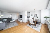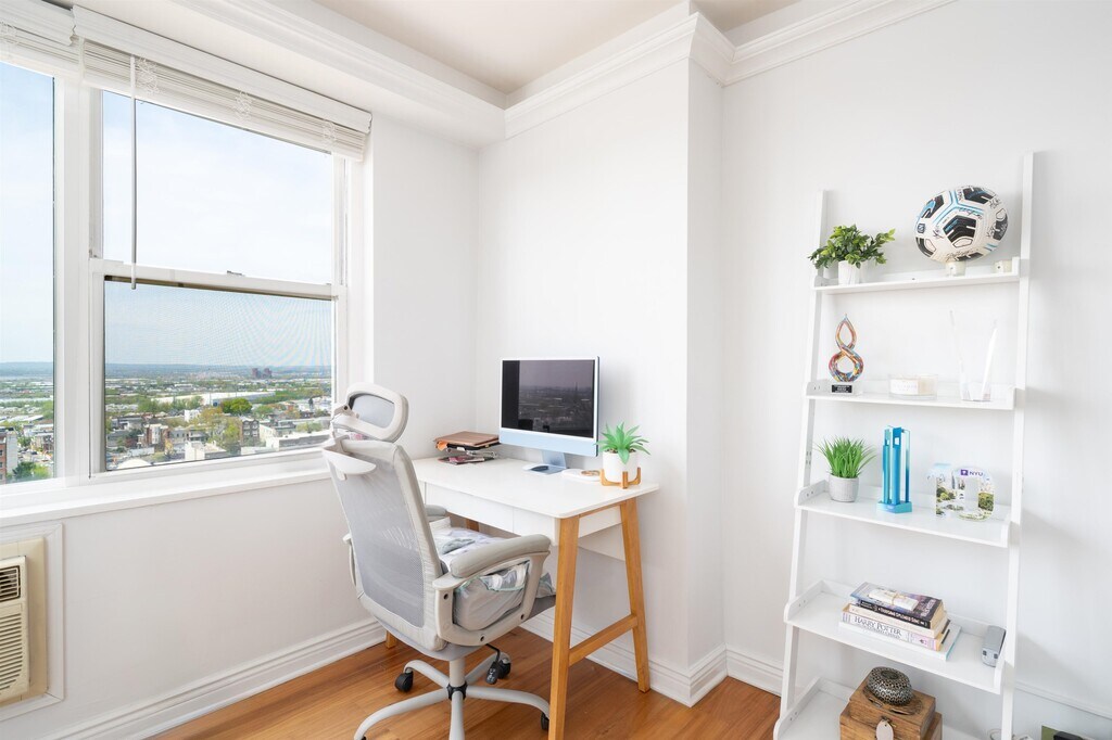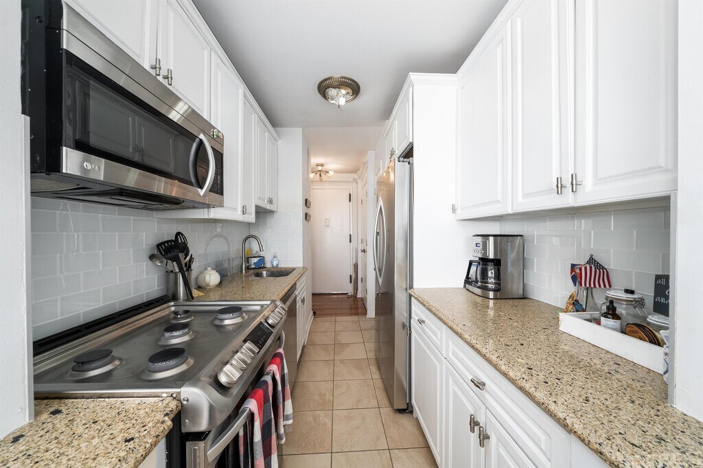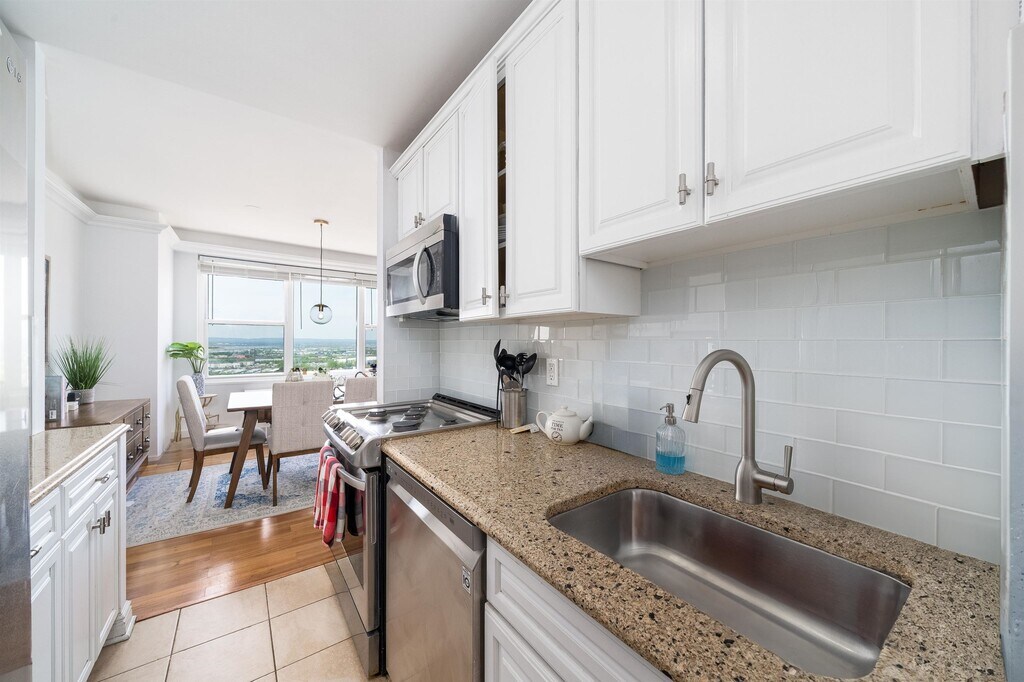 Spacious corner one bedroom with balcony at The Lenox, a full-service building just blocks from Washington Park in Union City. Enjoy panoramic sunset views from the open concept living/dining space in this bright and airy 15th floor residence. The kitchen features white cabinetry, granite countertops, stainless steel appliances, and a spacious pantry for storage. The oversized primary bedroom boasts a large closet and access to your private balcony. Heat/hot water/gas/building amenities are all included in the rent. The Lenox offers 24 hours concierge service, a private building shuttle to the Hoboken PATH, rental parking on-site, a fitness center, resident lounge, laundry room, elevators, and an outdoor grill area. Close to Washington Park, the Congress Street Light Rail, Downtown Union City, Jersey City Heights, and more!