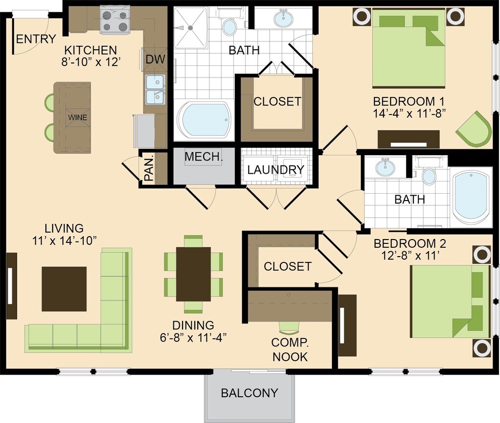 2 Dormitorios, 2 Baños, 1266 pies²Disponible AhoraDetalles de Diponibilidad