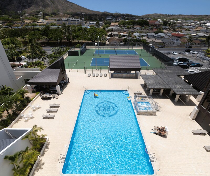 Rare ground-floor, townhouse-style residence at the Esplanade in Hawaii Kai. Unit 21J features an extra-large living area and a spacious approx. 690 sq ft private open lanai - offering a unique layout found only on the ground floor - complete with a gated entrance leading directly to a private landscaped park and Koko Marina. This home offers seamless indoor–outdoor living with excellent privacy, trade winds, and central A/C for year-round comfort. The Esplanade is a premier waterfront community with resort-style amenities including a heated saltwater pool, spa, tennis and pickleball courts, fitness center, BBQ areas, miniature golf, koi pond, and Luna Kai Park, plus an active social calendar and pet-friendly environment. Additional features include 2 covered parking stalls, extra storage, car wash station, 24-hour security, and potential availability of a boat slip up to 30'. All Hawaii Kai public schools are International Baccalaureate (IB) accredited. Ground-floor convenience with townhome-style privacy makes this home ideal for indoor–outdoor living, with direct gated access to green space and the marina - perfect for morning walks and pets.