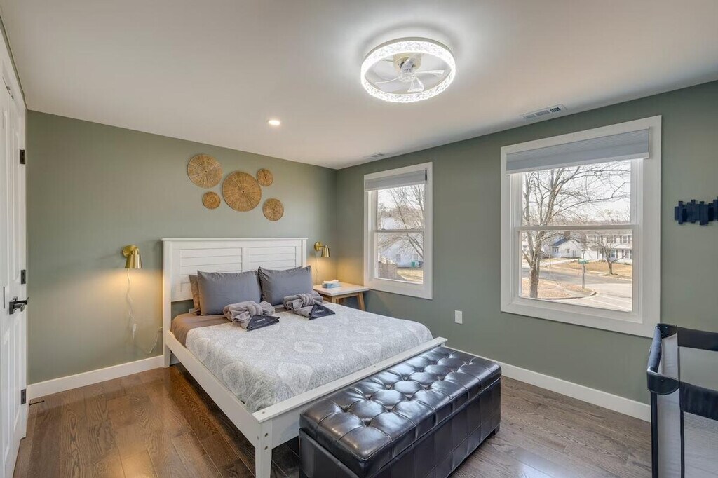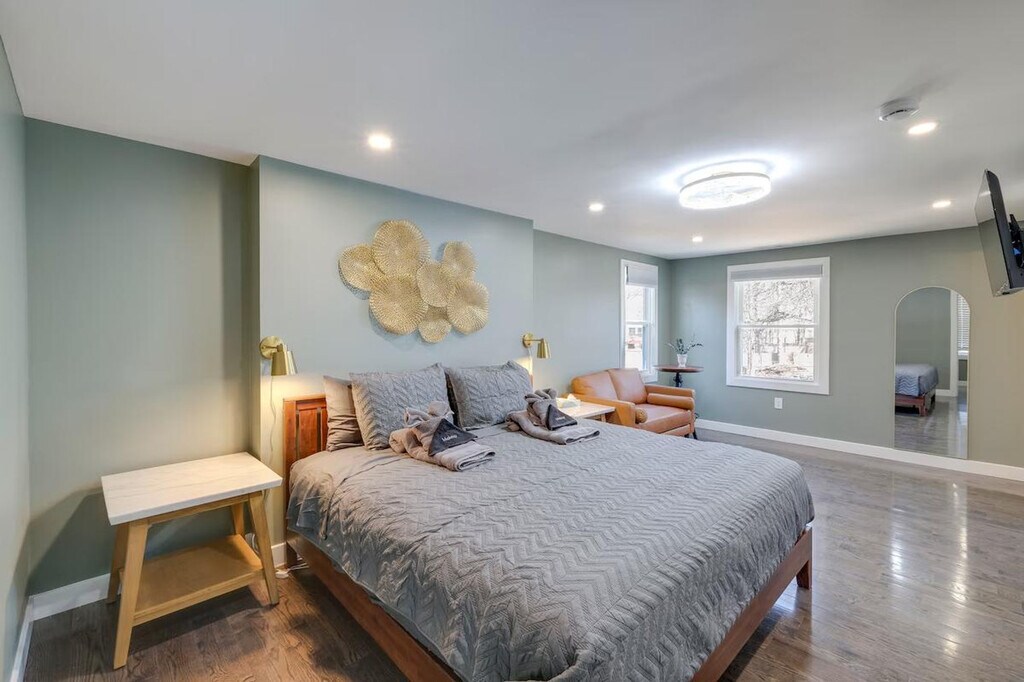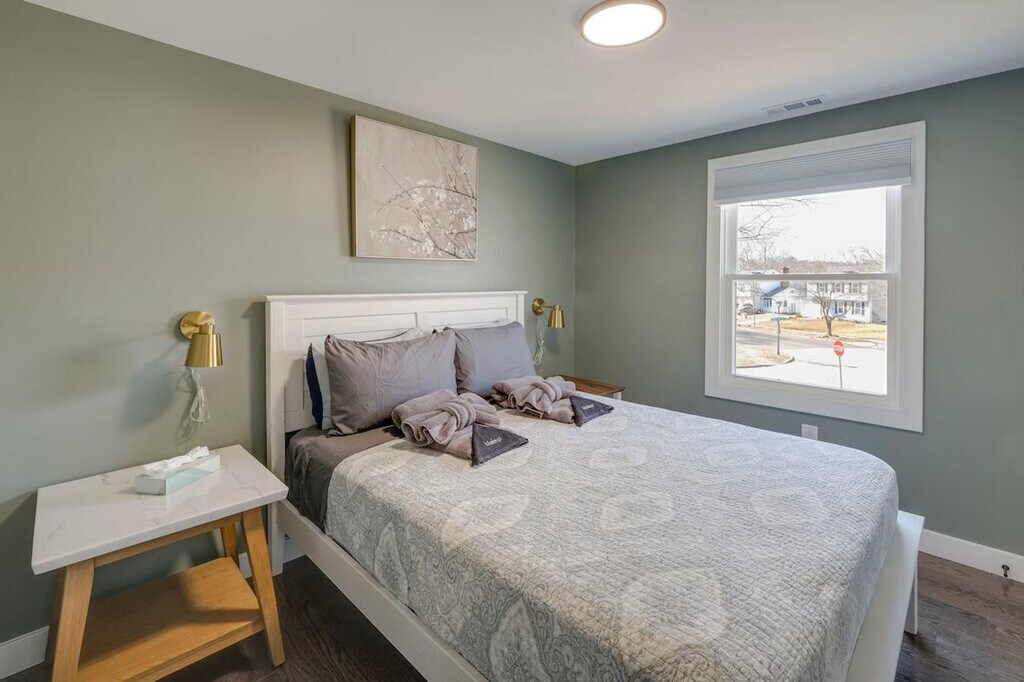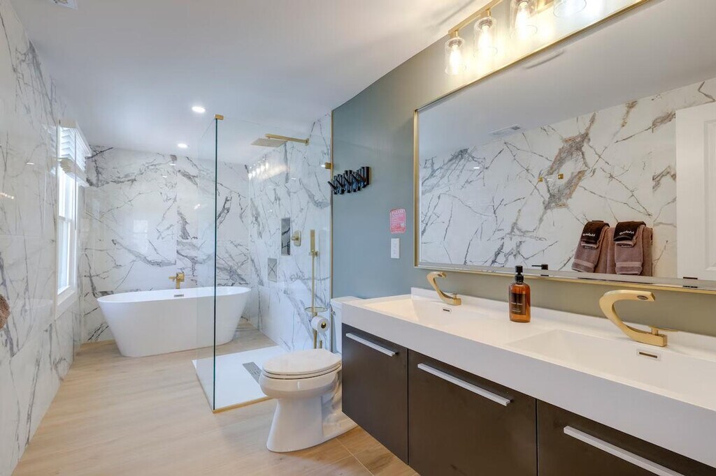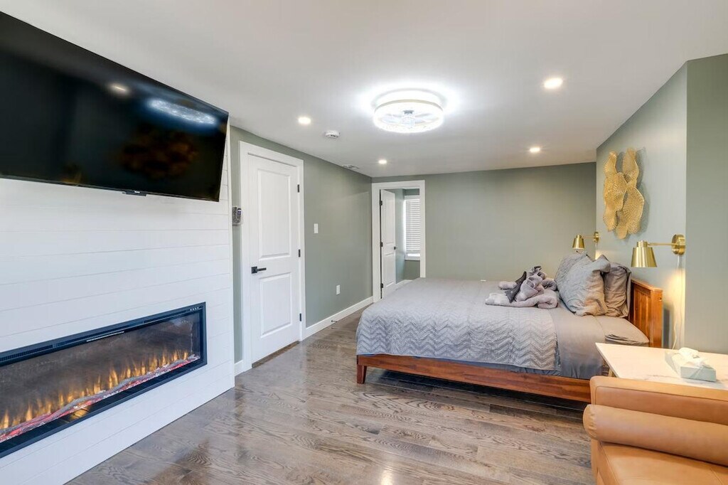 Feel at home in this spacious 5-bedroom apartment in Fort Washington, MD, situated just 18 miles from Washington, D.C. This 2-story unit requires two steps to enter and features a bedroom and full bathroom on the first floor. This upscale apartment features Smart TVs, books, two electric fireplaces, a foosball table, board games, a dining table, a breakfast bar, and a soaker bathtub. The fully equipped kitchen includes stainless steel appliances, a stove/oven, refrigerator, dishwasher, microwave, a Hamilton Beach dual drip/pod coffee maker, dishware/flatware, cooking basics, trash bags, and paper towels. Enjoy outdoor living with a gas grill, deck, dining area, umbrella, fenced backyard, and Adirondack chairs. Pets are welcome with a $75 fee (plus fees and taxes, 2 pets max). Whether you're exploring the outdoors or immersing yourself in history, you'll have plenty to look forward to when it's time to unwind. There are four exterior security cameras located above the front door facing the front entrance and driveway, on the left side of the home facing the garage apartment entrance, on the right side of the home facing the basement unit entrance, and above the back door facing the back entrance and backyard. The cameras are outward facing and do not look into interior spaces and record video and sound when activated by motion. No smoking, events, parties, or large gatherings are allowed. Registration Number: HOU-0670-2025-STR-H [SI]