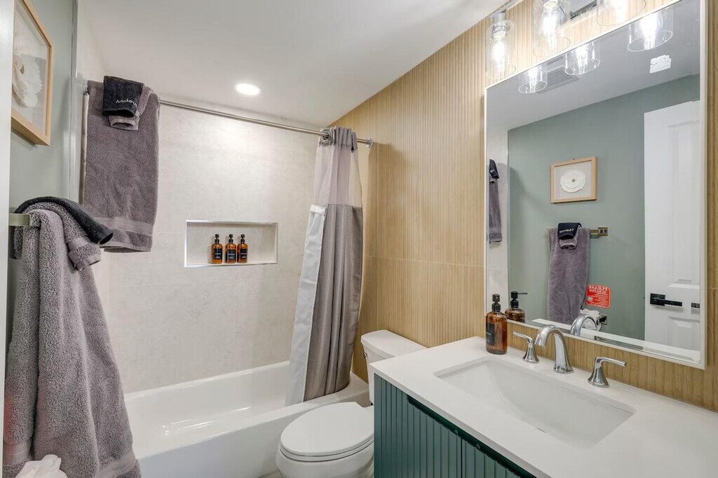 Feel at home in this chic 1-bedroom apartment in Fort Washington, MD, ideal for couples and small families. This single-story apartment requires a small step to access. This apartment features a well-equipped kitchen with stainless steel appliances including a refrigerator, dishwasher, and microwave. A toaster oven, 2-burner hot plate, blender, and Hamilton Beach dual drip/pod coffee maker are also provided. For entertainment, enjoy the Smart TVs with cable, board games, and books. The apartment also includes free Wi-Fi, central A/C and heat, a washer/dryer, linens, towels, a hair dryer, laundry detergent, an iron/board, and hangers. Pets are welcome with a fee of $75 (plus fees and taxes, 2 pets max). Enjoy proximity to outdoor recreation and Washington, D.C., attractions. Smoking, events, parties, and large gatherings are prohibited. There are 4 exterior security cameras located above the front door facing the front entrance and driveway, on the left side of the home facing the garage apartment entrance, on the right side of the home facing the basement unit entrance, and above the back door facing the back entrance and backyard. The cameras are outward facing and do not look into interior spaces. The cameras record video and sound when activated by motion. There is another bookable vacation rental on-site with a shared driveway, and a long-term tenant lives on-site in a completely separate unit. - This property sleeps 3 guests in 2 beds with room for 4 guests total by using the twin rollaway bed. Registration Number: HOU-0670-2025-STR-H [SI]