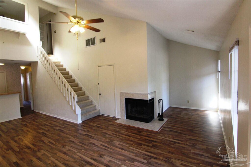 This townhome is conveniently located midway between NAS Pensacola and NAS Whiting. Walk to PSC,Cordova Mall,Cordova Square,Sacred Heart Hospital,dozens of restaurants,and medical facilities. Villas on the Square has a community pool,hot tub,community room,landscaped grounds and lovely picnic areas with trees and sidewalks. One-car garage. HOA restricts dogs to under 25 lbs. Cats okay. No exotic pets.