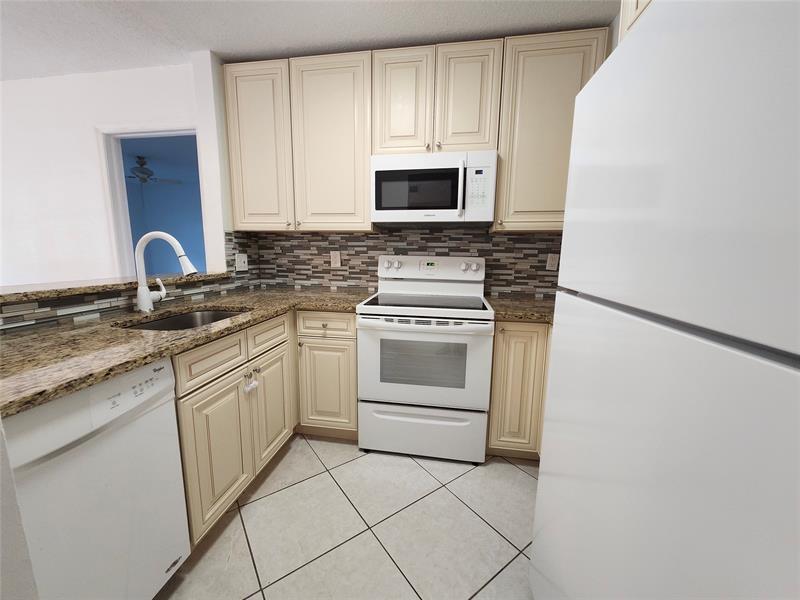 Desirable Condo, first floor 2 bedroom, 2 bathroom. Great location, 10m drive to the beautiful Deerfield beach. Offers storm shutters, updated kitchen, granite kitchen counters, solid wood cabinets, tiled flooring throughout, and a split floor plan, walking close, washer & dryer. Close to shopping, schools, restaurants and easy access to all major Highways. Fast Association approval.