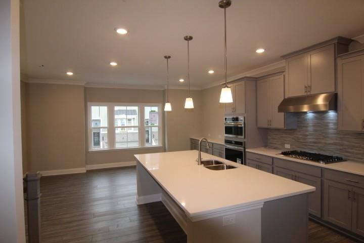 ALMOST NEW house at the heart of Smyrna, Cumberland Station community. Spacious 4 bedrooms, 3.5 baths, and 2 garages. Open floor map in the main: chef's kitchen boasted a huge island and stainless steel appliances. It is open to dining area and great room, full of natural light. The large island offers sweeping views of the casual dining and gathering room. Upstairs, the owner's suite with tray ceiling leads to the spa bath with dual vanities, large tile shower, and walk-in closet. There are also two additional bedrooms and a full bathroom upstairs. The terrace level with full bathroom offers plenty of space for a guest suite, home office, or media room. Two-car, rear-entry garage.