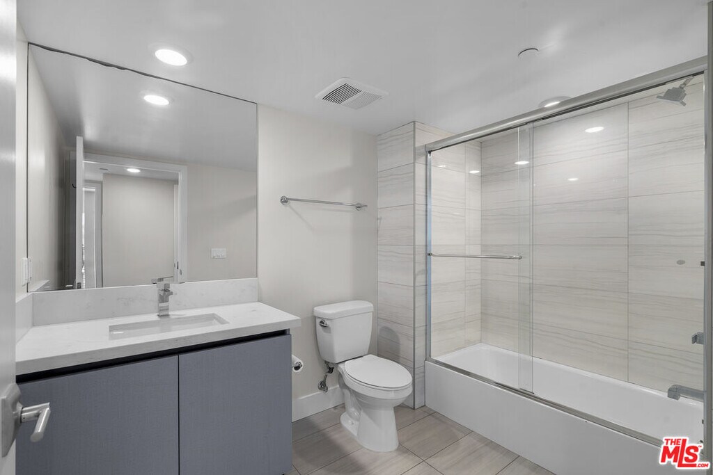 Penthouse unit with balcony! This top floor southwest corner unit has large windows in each room creating bright inviting spaces with views of downtown LA and hills. Open space floorplan with living room, dining area, and modern concept kitchen featuring stainless steel appliances, Caesarstone countertop and glass tile backsplashes. Primary bedroom with en suite bathroom and walk-in closet. Two additional bedrooms on the opposite side of the unit share a second full bathroom. Recessed lighting, beautiful flooring, hotel-like bathrooms, and washer/dryer in unit. Two tandem parking spaces in a secure gated garage. Small pets allowed. Convenient to Larchmont Village and Hollywood. Some photos are virtually staged. MLS# 25595547