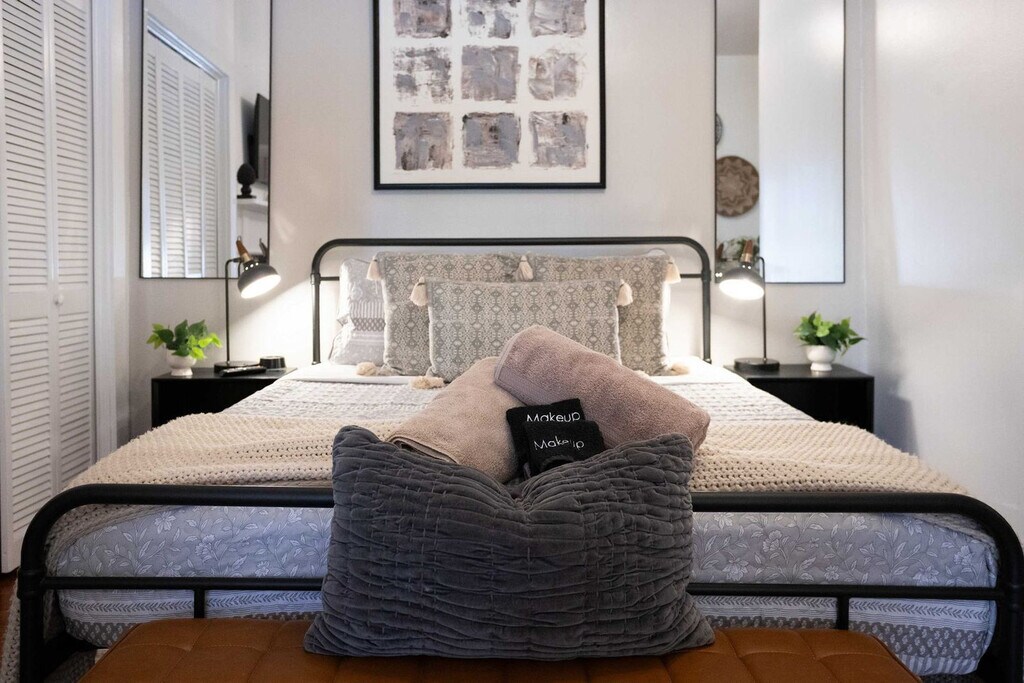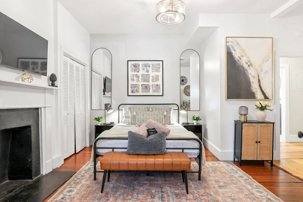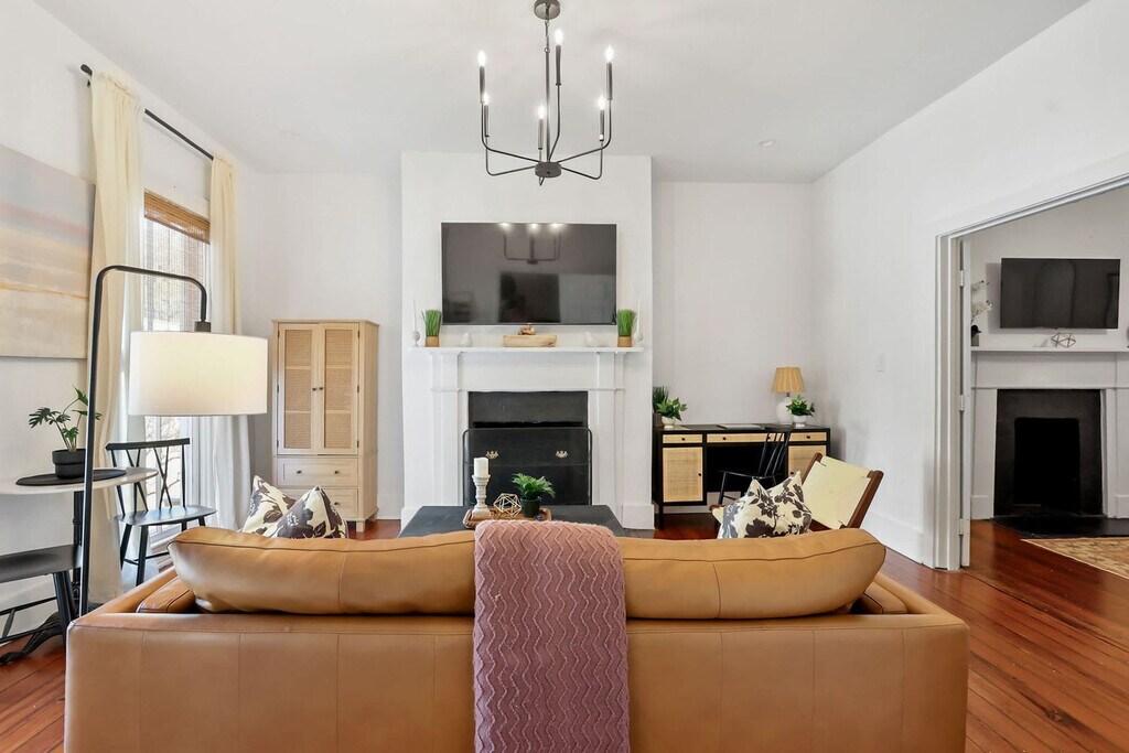 The advertised rate of $3,292/month is the lowest available price, based on a 30 day(s) stay with a move-in date of July 19, 2026. Rates vary depending on the duration of stay, season, and other parameters. For exact pricing and additional pricing components, please visit our website and enter your desired move-in and move-out dates. The rate is applicable when billed upfront; it can be higher if billed in multiple payments. Feel at home in this quaint and cozy second-floor Parlor apartment in Savannah, originally built in 1886. This 1-bedroom, 1-bath unit is accessible after entering the building through the second-story common entrance off E. McDonough St. The apartment is located 15 steps from the sidewalk to the building entrance. The apartment retains its historic character while offering thoughtful modern updates. Relax in the spacious living area, complete with a plush sofa. The fully equipped kitchen boasts modern stainless steel appliances, a complete cookware and utensil set, a Keurig coffee maker, essential small appliances, ample counter space for meal preparation, and a regular-sized refrigerator, stove, and dishwasher. The bedroom features soaring ceilings, a memory foam bed with luxury linens, a flat-screen TV, and ample closet space. The bathroom combines vintage elegance with modern touches, featuring a tub/shower combo and designer details. Additional amenities include an in-unit washer and dryer, high-speed Wi-Fi throughout the property, and central air conditioning and heating. Fresh linens and towels are provided. Enjoy an evening cocktail on your private balcony, or head down your balcony stairs to the shared courtyard below. Metered street parking is available on a first-come, first-served basis right outside of the front and back doors. Situated beside picturesque Crawford Square, this apartment is ideal for couples or solo travelers who want to relax in style while staying steps away from Savannah’s best dining, shopping, and historic landmarks. You’re just a short walk from River Street and all the charm that downtown has to offer, and within walking distance of historic Forsyth Park. A Kroger grocery store and other convenience shops, as well as numerous restaurants and cafes, are within walking distance. The apartment is located in a peaceful residential area while remaining central to everything. You're steps from the world-famous Forsyth Park, a quick walk to the Starland district, and about a 15-minute walk to the river and heart of downtown. Strictly no smoking and no pets are allowed. Quiet hours must be observed between 8 PM and 8 AM. Maximum occupancy is 2 guests. Even though the property is sprayed for bugs on a quarterly basis, you might see palmetto bugs, wasps, and other insects during your stay. Please do your best to keep them out of the house by keeping the windows and doors shut at all times, only bringing food items to the dining room, and keeping trash in the trash can. Includes a dedicated workspace. Registration Number: SVR-03205 [SI]