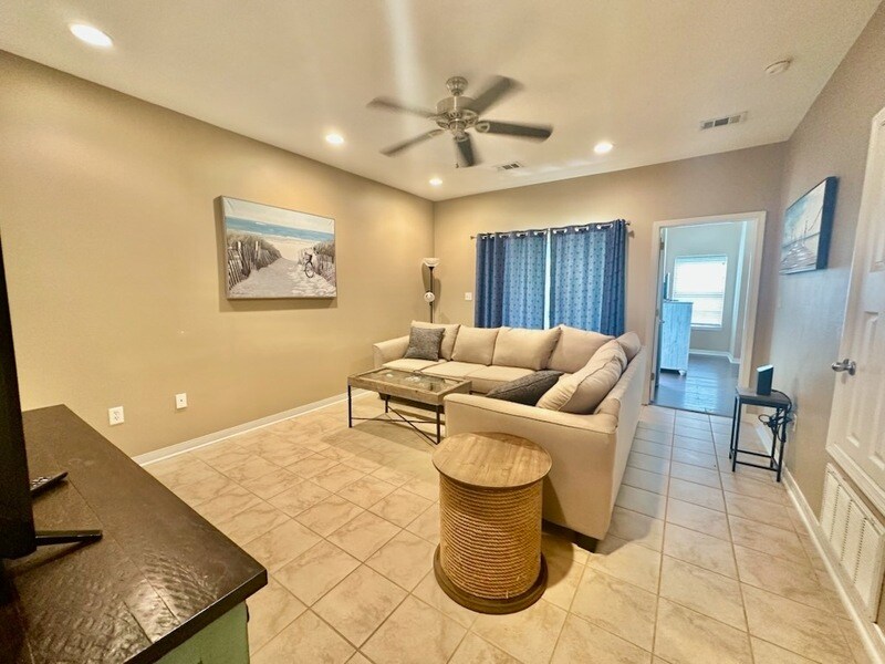 Fall in love with this beautifully maintained, spacious end-unit townhome featuring an attached garage and an extended pavered driveway for extra guest parking. Located just a short stroll from the Bayou and Lion's Park with boat launch, this home offers the perfect blend of comfort, convenience, and natural surroundings. Inside, the flowing layout is enhanced by elegant archways, creating a seamless transition between rooms. The tiled entryway leads into a well-appointed kitchen and dining area with granite countertops, rich wood cabinetry, pantry, and stainless steel GE appliances, including a Whirlpool dishwasher. The bright living room opens through sliding glass doors to a screened-in porch—ideal for relaxing or entertaining. The downstairs master bedroom also offers direct access to the porch and features an en suite bath with a stylish subway tile shower, glass tile accents, and a modern vanity. Throughout the home, all carpet has been replaced with hand-scraped hickory laminate flooring, including the staircase. Upstairs, you'll find two generously sized bedrooms and a full bathroom. High-placed windows throughout the home provide abundant natural light while offering versatile furniture arrangement options. As an end unit, enjoy the added privacy of a spacious backyard with a natural buffer. The home also features an updated HVAC system downstairs and includes a refrigerator, washer, and dryer for your convenience. Located just minutes from Eglin AFB and the stunning beaches of Destin, this townhome offers comfort, style, and a prime location. Don't miss out—schedule your showing today at .
