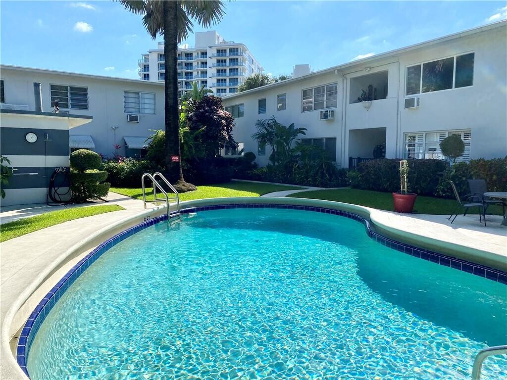 Three blocks to the beach!! Come live in this mid century modern fully furnished 1 bedroom located three blocks from Central Beach. The hidden gem is completely renovated with a king size bed, fully equipped kitchen, and even a pull out sofa in the living room. Beach Ridge has a private keyed entrance, heated pool, and laundry facilities for use. Available as an annual rental ($2000/mo) or short term ($3000/mo). Ideal for someone relocating to Fort Lauderdale or looking for an extended vacation. Available after April 6 2026.