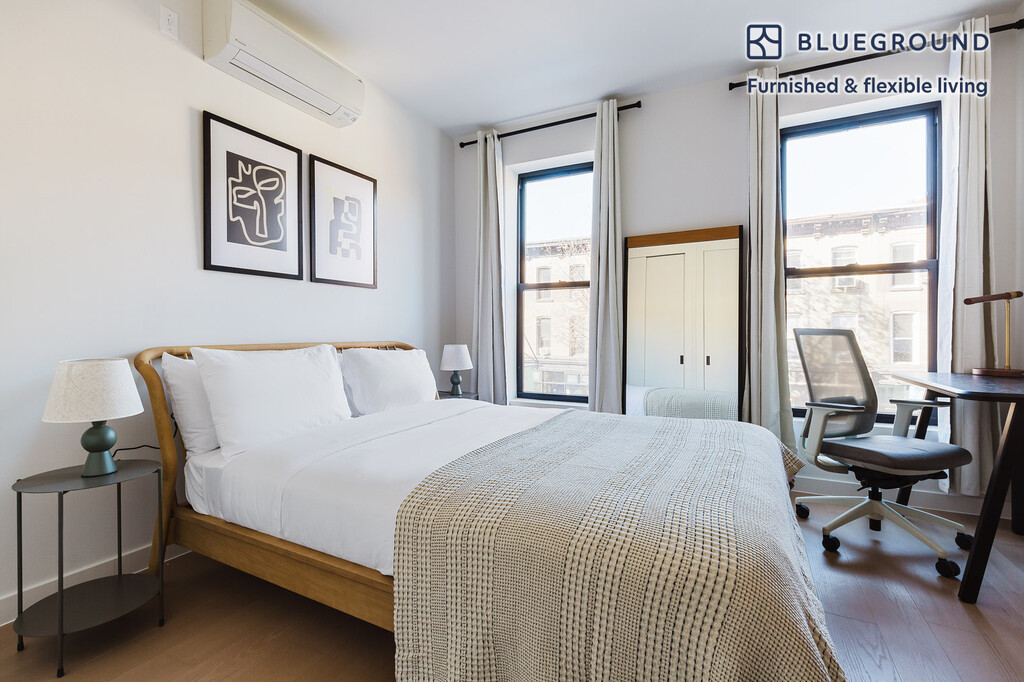 Show up and start living from day one in New York with this lovely two bedroom Blueground apartment. You’ll love coming home to this thoughtfully furnished, beautifully designed, and fully equipped Park Slope home. (ID #NYC1660) The advertised rate of $4,570/month is the lowest available price, based on a 6 month(s) and 4 day(s) stay with a move-in date of July 1, 2026. If you’re looking for a 1-year stay, the rate is $5,280/month. Rates vary depending on the duration of stay, season, and other parameters. For exact pricing and additional pricing components, please visit our website and enter your desired move-in and move-out dates. The rate is applicable when billed upfront; it can be higher if billed in multiple payments. Brokers are welcome to reach out. Were you looking for an unfurnished lease? Try Blueground instead and upgrade from unfurnished to furnished living: - Furnished at rates comparable to unfurnished - No setup or furniture costs - save thousands - Move-in ready - save time, just bring your suitcase Designed with you in mind As with any Blueground apartment, you’ll find a thoughtfully designed space complete with beautiful furniture and a fully equipped kitchen in this two bedroom property. And, thanks to our superior quality mattresses, luxury linens, and towels, you can relax knowing you’ll always feel comfortably at home. When you’re ready for some fun, you can take in the New York vibes or bring the entertainment to you with the premium wireless speaker or smart TV. This apartment also offers in-apartment laundry. Sleeping arrangements Queen Bed, 63in/160cm Queen Bed, 63in/160cm Amenities Building amenities unique to this two bedroom apartment include an on-site: - Dryer - Washing machine - Pets allowed Arrival and ongoing support The entire apartment is yours to enjoy! Throughout your stay, you’ll have access to our Client Experience team through the Blueground App. You can schedule additional cleanings, submit maintenance requests, and view our neighborhood recommendations with just a few taps. We’ll share all details upon confirmation of your stay. Ideally Located This furnished apartment is located in Park Slope, an upscale residential Brooklyn neighborhood that takes its name from sprawling Prospect Park. This family-friendly area has plenty to do and see. Both 5th and 7th Avenue are lined with boutiques, cafes, and restaurants catering to the brunch crowd. The park is also a major attraction, with a variety of places to picnic and play sports, as well as a dog beach and even a bandshell with live performances. Park Slope is served by the D, F, G, N, R and W lines of the New York City subway system. Other things to note This Blueground apartment has flexible lease options, allowing you to book it for one month, a year, or more. Pets are welcome, though weight limits and breed restrictions apply and may incur fees. Please keep in mind that this is a walk up building. Brokes CYOF. We take great pride in ensuring every photo displayed is shot in our own units with our actual furnishings. That said, we regularly refresh our decor and furniture arrangement, which may differ from what’s pictured. [SI]
