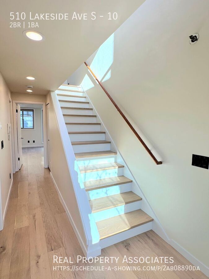This recently renovated, two-level end unit offers the perfect blend of modern design and lakefront living. Featuring stainless steel appliances, quartz countertops, the home exudes a clean, contemporary feel. Downstairs, you’ll find two spacious bedrooms and a remodeled bathroom with a double sink and dual shower heads. Upstairs, enjoy an open floor plan with living, dining, and kitchen areas filled with natural light from skylights and large windows. Direct access to a private waterfront dock with views of Mt. Rainier, Cascades and Bellevue Skyline. Leschi Marina, nearby parks, local dining and easy access to Downton make this location both convenient and enjoyable for everyday living. 12 Month Lease Available Application: $45 per person/adult Refundable Security Deposit: $3,350 No pets One reserved parking spot is available Renter's legal liability insurance is required and part of the Benefits Package ($30 monthly). If qualifying legal liability insurance is purchased and provided by tenant to RPA, the benefit package can be reduced to $15 monthly for reduced benefits. Professionally managed by: Real Property Associates, Inc. Condo One Parking Spot Washer/Dryer Professionally Managed by Real Property Associates