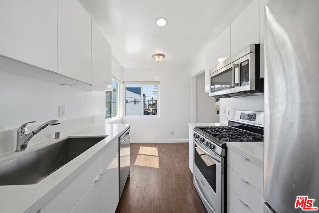 TOP FLOOR light & bright corner unit only one block from the beach, right off of Main Street and super close to Abbot Kinney. This beautiful top floor two bedroom has an updated kitchen with quartz countertops, stainless steel appliances and lots of cabinet space, a remodeled bathroom with tub & shower and a spacious bedroom. Other features include, AC spitters in every room, wood laminate floors and a generous closet in the hallway between the living room and bedroom. No pets. MLS# 25618717