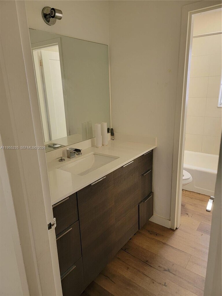 Beautiful and remodeled 2 bedroom and 1 bathroom apartment in Doral. Modern kitchen with stainless steel appliances and quartz countertops. Hardwood floors throughout. The spacious layout includes 2 large bedrooms with ample closet spaces. There is a balcony perfect for relaxing. Convenient location close to Downtown Doral; City Place Doral; restaurants; schools; shopping centers and main roads access. Community with sparkling pools; tennis court; kid's playground and fitness center. Laundry facilities on the second floor. MLS # A11955235