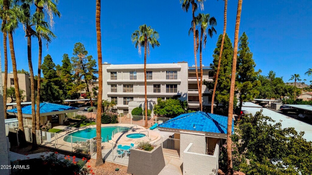 NEWLY REMODELED baths! READY for NOV+DEC PRIME 2026 Winter Season in ARIZONA BILTMORE ESTATES ...a peaceful contemporary Golf Course Community at ARIZONA BILTMORE! for LONG TERM RATE see MLS # 6916306. Light Corner Balcony & On-Demand HOT water! Gated Community w Two-Pool's Two Spa's,Clubhouse+Fitness Center alongside the lakes of the Links Golf Course 3rd Green & 4th Tee. Single Level w views through the community over the quiet pool & trees out to the North or East from Master Ensuite Bedroom and Living Room in this scenic community -w Direct Pedestrian Access to BILTMORE PLAZA for SAFEWAY grocery needs,HAVA JAVA WellsFargo+Sushi,Bobby Q's BBQ,The Collins Keegan's Grill,Tomaso's,Tarbell's Restaurants & more. Electricity Cap=$125/mo.