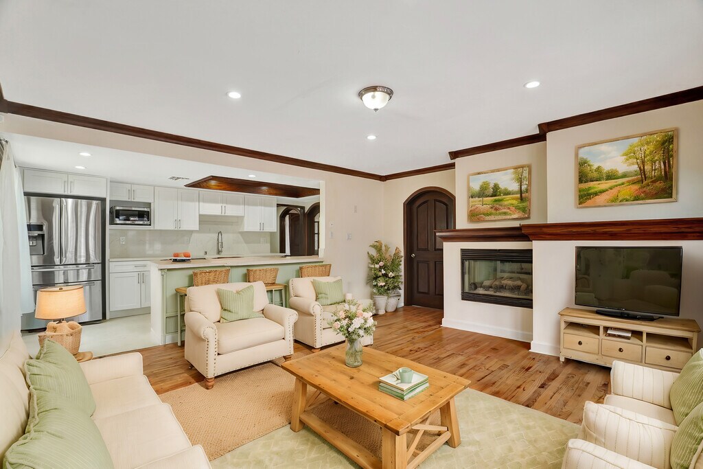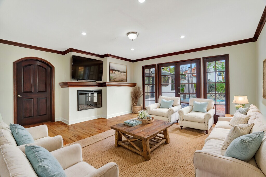Beautiful single level prime Encino Home! This amazing home boasts 4 bedrooms, 3 baths, and 2115 sqft on an approx. 8500 sqft lot! Additional 400 sqft converted office space (not included in sqft), bathroom and separate entrance! Wood crafted features throughout the interior of the house with 3/4 pine wood flooring. Living room with electric fireplace, wood crafted dining room, family room with another electric fireplace opens to the backyard, wood crafted ceiling, dark wood molding plus crown moldings, LED lighting recessed lighting throughout, central air/heater, laundry room with W/D, updated baths, 3 bedrooms plus master bedroom, modern open renovated kitchen with granite counter tops, new roof installed and stainless steel appliances. Built in BBQ, burner and gas fireplace for outdoors entertaining. Excellent school district, steps away from Hesby Oaks school (k-8th), Ventura Blvd, restaurants, bars, equinox, LA Fitness and more!