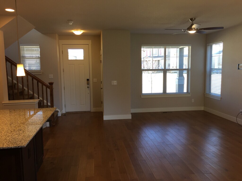 AVAILABLE JUNE 1, 2026 BEAUTIFUL HOUSE ON THE LARGEST COURTYARD IN CENTRAL PARK! Beautiful single family home (not a split home) with 3 bedroom and 2.5 bathroom, PLUS bonus loft area and expanded 2nd floor master suite with vaulted ceiling! Lots of upgrades (granite kitchen, large island, stainless steel appliances, hardwood floors on entire first floor, upgraded hardware, and a tankless hot water heater) on an oversized private courtyard with large front porch. Heated and insulated unfinished basement that is usually used as extra living space, office, guest room. Over1820 square feet plus another 800 sq feet in the large unfinished basement. Laundry on 2nd floor. Energy efficient built green home. Low-maintenance landscaping with turf in the backyard (so no watering and mowing expense) and the $170 HOA fee paid by tenant includes courtyard landscaping, watering and snow removal plus water to the house (so no water utility bill). Central Park (previously named Stapleton) is an award winning neighborhood that is in high demand with Denver's best schools, open space, parks, sledding hill, new rec center and library, six pools, easy access to DIA, Downtown, Fitzsimmons Medical Campus, Northfield shopping and the mountains. No pets preferred, but may allow single dog with appropriate fees. Tenant pays other utilities (gas, electric, trash pickup, cable/internet, etc.).
