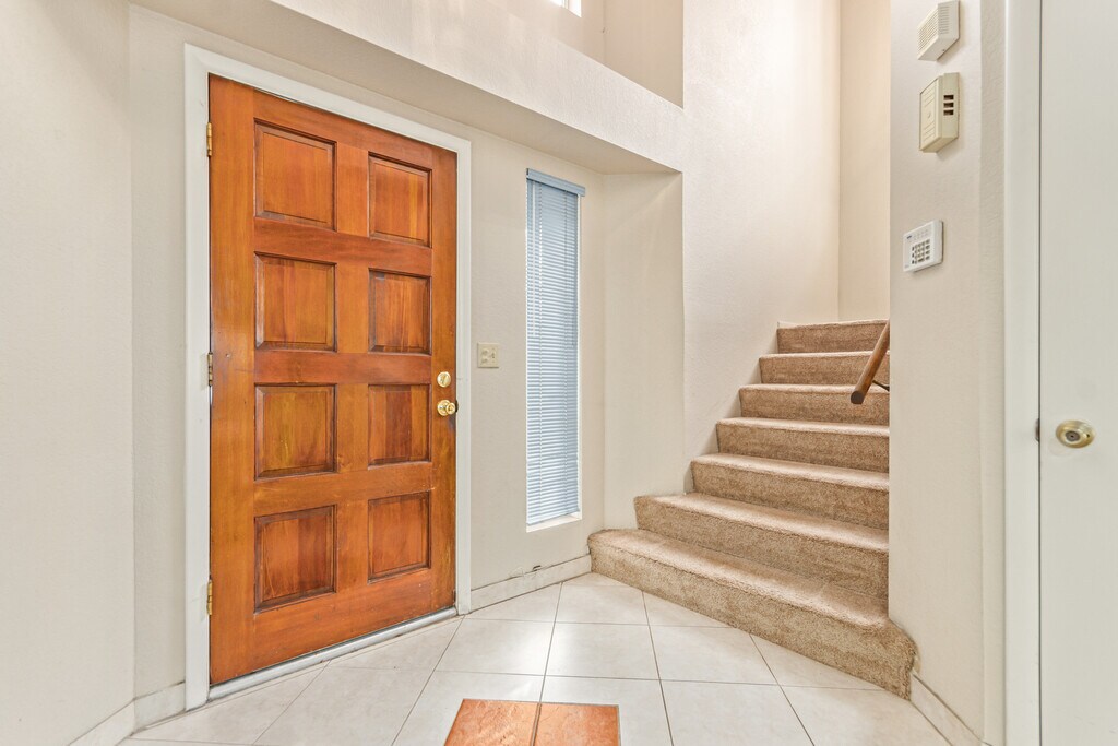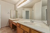 Look no more! Fantastic two-story home in the peaceful Community of Merit Estates is a must-see! A 2-car garage and a gated front patio will greet you upon arrival. Discover a welcoming interior with a spacious living and dining room, a cozy fireplace great for these holidays, vaulted ceilings, a neutral palette, lots of natural light, and brand new luxury vinyl in all the right places. The eat-in kitchen comes with soon to be installed brand new appliances, plenty of counter space, and honey oak cabinets. The primary bedroom is downstairs for extra privacy! It features a spotless ensuite with a dual sink vanity and a walk-in closet. Head upstairs to find the secondary bedrooms.
