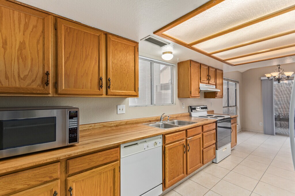 Gary YagudayevLook no more! Fantastic two-story home in the peaceful Community of Merit Estates is a must-see! A 2-car garage and a gated front patio will greet you upon arrival. Discover a welcoming interior with a spacious living and dining room, a cozy fireplace great for these holidays, vaulted ceilings, a neutral palette, lots of natural light, and brand new luxury vinyl in all the right places. The eat-in kitchen comes with soon to be installed brand new appliances, plenty of counter space, and honey oak cabinets. The primary bedroom is downstairs for extra privacy! It features a spotless ensuite with a dual sink vanity and a walk-in closet. Head upstairs to find the secondary bedrooms. Relax after a busy day in your private backyard. Excellent Phoenix location close to schools, shopping, restaurants, and AZ 101. Don't miss this gem!