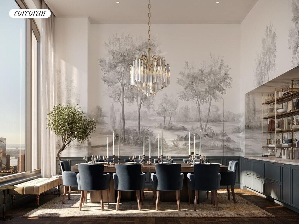 Lei ChenBe the first to live in this stunning unit with skyline view!This dramatic triple-exposure 1,072 SF one-bedroom residence features south, west, and north exposures and views of Bryant Park and the Manhattan Skyline through five arched 10' by 10' windows. This luxurious home boasts a windowed entry foyer that can serve as a light-filed home office, an open chef's kitchen, a primary bedroom with a four-fixture bathroom, a powder room, and a washer/dryer.520 Fifth Avenue is the tallest residential tower on Fifth Avenue and a new vision for refined living in Manhattan-520 Fifth Avenue soars 1,000 feet above the world's most famous thoroughfare. Offering sweeping views stretching from river to river, up to Central Park, and downtown over Bryant Park toward the Empire State Building and beyond, the residences at 520 Fifth Avenue take advantage of soaring heights-beginning at 400 feet and reaching nearly 900 feet in elevation.Designed by the acclaimed firm Kohn Pedersen Fox Associates, the classic architecture of 520 Fifth Avenue is informed by the neighborhood's wealth of world-renowned landmarks including the New York Public Library, Grand Central Station, and Bryant Park. Grand terracotta arches at the building's base, soaring as high as 60' on Fifth Avenue, and framing windows of 10' by 10' or more, are a signature feature of the fa ade and residences.AD100 designer Vicky Charles, of Charles & Co, has curated timeless interiors throughout the building, reflecting the classic sophistication of her work for Soho House and a roster of Hollywood A-listers. Crafted finishes with sculptural qualities include beautiful casings and trim and 7-inch-wide plank white oak floors. Fully vented kitchens feature islands clad in reeded-walnut, honed Taj Mahal quartzite counters, a suite of Miele appliances, and a beautiful Italian five-burner range by Ilve. Primary bathrooms feature radiant heated floors, walnut furniture-quality millwork, medicine cabinetry with integrated electric outlets and mirrors inside and out, and walls and flooring clad in Calacatta Lincoln marble complemented by Laguna Verde marble wainscoting. Each bathroom, including the secondary bathrooms and powder rooms, is designed by Charles & Co leaving wall space for owners to personalize their interiors to their taste. Year-round comfort is assured by a discreet ceiling hung four-pipe fan coil HVAC system. 520 Fifth Avenue anticipates LEED Gold, WELL, and WiredScore certifications.A crown-jewel of 520 Fifth Avenue is its 88th-floor residents-only Penthouse Amenity Suite showcasing spectacular 360-degree views and offering an array of private entertaining options including a glass-walled solarium, an expansive lounge with Empire State Building views, a dining room, a library/reading room, and a billiards/game room.Residents additionally enjoy two memberships to Moss, a new, exquisitely appointed members club at the building's base. Moss offers a wealth of dining, bar, and lounge options as well as extensive fitness and spa amenities.520 Fifth Avenue is a new way to live at the center of the center of New York City.Upfront costs:One month rent: $13,500Security deposit (refundable): $13,500Application fee: $900Consumer report fee: $120 per applicantDigital retention fee: $150Move in fee: $500Move in deposit (refundable): $1,000
