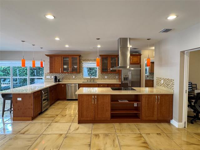 Live where every day feels like a getaway — stunning home in Coral Gables with your boat right in the backyard! Entertain in style, park with ease, and enjoy upscale waterfront living at its finest. Single family Home with a 60" boat dock and a 35" like a garage space, 3bed +Den, 2.5 baths, 2 car garage with a drive way for another 6 to 8 cars well located in the Gables neighborhood. Amazing kitchen and outside kitchen for entertainment. Great size bedrooms and a spacious laundry room. Enjoy boating right of your backyard. Look no further, this amazing place wont last long. Landscape is owners responsibility. Bridges clearance 18 feet(public information). Tenant must verify. 5200 Riviera Dr CORAL GABLES, FL 33146-2741 ML#: F10516582