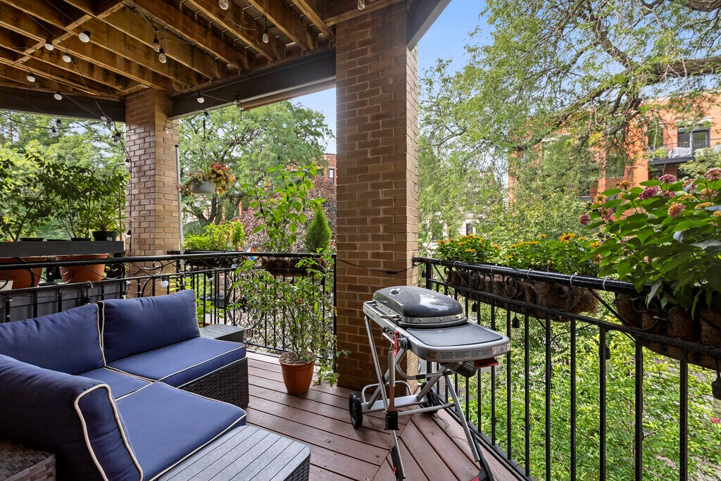 This beautifully maintained Greystone condo on a shady Edgewater street combines timeless character with modern convenience. The open-concept floor plan offers generous living space, high ceilings, and an effortless flow that’s perfect for entertaining or relaxing. The chef’s kitchen shines with a breakfast bar, wine fridge, newer stainless-steel appliances (fridge, dishwasher and under-cabinet microwave), and ample storage. The sun-filled living area features exposed brick accents and wide, inviting space that exudes warmth and classic Chicago charm. Retreat to the king-sized primary suite, complete with a spacious walk-in closet with custom organizers and a large en-suite bath featuring dual sinks. The second bedroom easily fits a queen bed and offers excellent storage. Enjoy ample outdoor living on your private, covered deck overlooking tree-lined Winthrop Avenue—perfect for morning coffee, quiet reading, or summer grilling. One prime outdoor parking space included. Pet friendly! Set on a picturesque block, this home offers a true residential oasis just steps from vibrant shops, cafes, and nightlife. Walk to Foster Beach and enjoy quick access to Lake Shore Drive. Move-in ready December 1 and full of character—this Edgewater gem truly has it all! ** Property Management firm requires mandatory Resident Benefits Package for an additional $40.00per month; includes renters insurance, positive credit reporting for on-time rental payments, identity fraud protection and more -Presented by Fulton Grace Reality