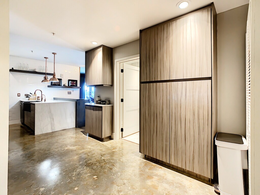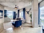Fully furnished, designer-reimagined corner unit at The Jackson in Thornton Park. This 2-bedroom, 2-bath condo includes two assigned parking spaces and is located just three blocks from Lake Eola on a quiet brick street in a boutique building with only 52 residences. Completely reconstructed and thoughtfully upgraded throughout, this smart home features Control4 automation, Ring doorbell, keyless entry, iPad control station, Ecobee thermostat, Sonos surround sound, Lutron dimmable lighting, Somfy electronic drapery, and Lotus lighting. The modern kitchen offers white Italian marble waterfall countertops, a sealed wood bar, GE and Whirlpool appliances, and a custom built-in dining table that seats up to 8. Soaring 10-ft concrete ceilings, polished concrete floors, and a custom media wall with a 75” Sony Bravia 4K TV complement the clean, loft-style aesthetic. Primary suite includes a king-sized built-in bed with hidden storage and a marble accent wall. Also included: a mini electric Suzuki baby grand piano, new A/C and water heater, Electrolux front-load washer/dryer, and professional cleaning + utilities. Second bedroom is currently set up as a reading and meditation lounge. 3D Virtual Tour available.