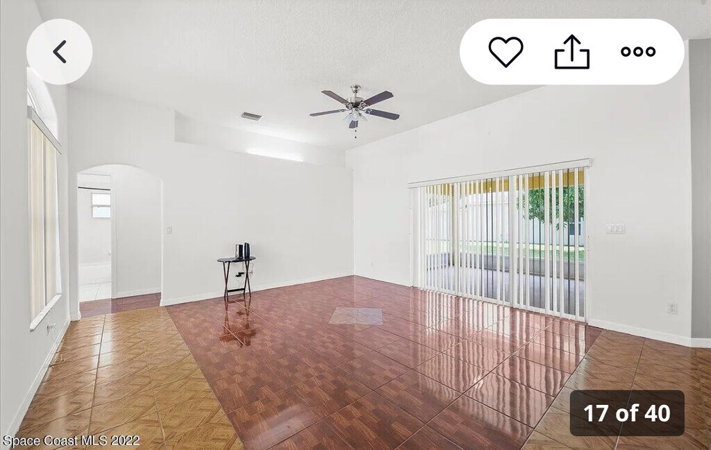 CORNER Higher LOT!!! MOVE IN READY spacious 3 bedroom, 2 bath, 2 car garage home on a LARGE corner lot.Lots of parking in driveway also lots of parking in driveway . House has a lovely screened in huge patio . Close to several school, shopping center , restaurant Hospital and college and HWY 95 , also just an 1 hour to Orlando and minutes to our GORGEOUS Space Coast Beaches!
