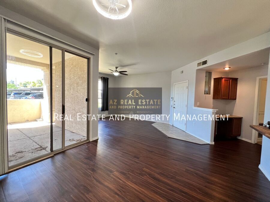 Lease this gorgeous,condo with garage in a gated community. White kitchen cabinetry with black granite and hardwood floors. Stainless-steel appliances and new washer & dryer set. Split floor plan with 2 primary bedrooms with ensuite baths,walk-in closets and private balcony. Perfect for roommates! All appliances included. Complex has fitness room,pool,and jacuzzi. Diverse restaurants,cafes,and shops just a stroll away. Quick access to the light rail,Biltmore shops,and freeway. Will accept housing vouchers with approved application. One covered parking space and separate garage are included. Includes water,trash,and sewer. Gated,pet friendly community!