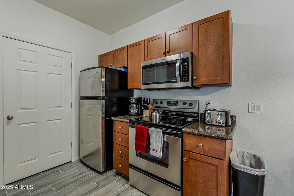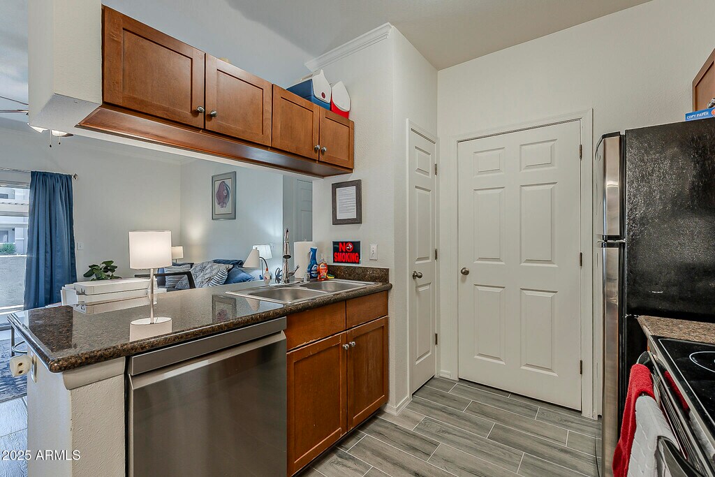 No Application Fees! First floor 1 bedroom,1 bathroom Phoenix condo located in the Riverwalk Condominium community. This upgraded unit features tile flooring throughout (no carpet),two-tone neutral paint,ceiling fans,and upgraded window blinds. The open living room includes a private patio and flows into a modern kitchen with granite countertops and backsplash,stainless steel appliances,and a separate pantry for added storage. The bedroom offers ample space and a large closet. Washing machine and dryer are included. Riverwalk is a gated,well-maintained community offering beautiful greenbelt areas,a sand volleyball court,a tranquil lake with fountains,and a sparkling community pool and spa. Conveniently located near Papago Park,Phoenix Zoo,Desert Botanical Garden,Tempe Town Lake,and minutes from ASU,Sky Harbor Airport,and Loop 202. All Denali Real Estate residents are automatically enrolled in the Resident Benefits Package (RBP) for $55.00/month which includes Renter's Liability Insurance,Credit Building to help boost the resident's credit scores with timely rent payments,up to $1M Identity Theft Protection,HVAC air filter delivery (for applicable properties),our best-in-class resident rewards program,and much more!