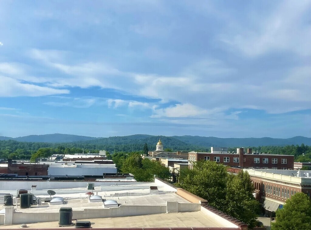 Enjoy beautiful downtown Hendersonville from this end unit at the historic Skyland Hotel! 1Bd/1Ba gem with incredible views from three different windows of downtown and the nearby mountains. Secured entry, elevator and off street parking make this fifth floor apartment accessible for everyone. Water/sewer, trash and parking included in rent. Dining and shopping literally at your front door. Please let RentWNC know if you are interested. .