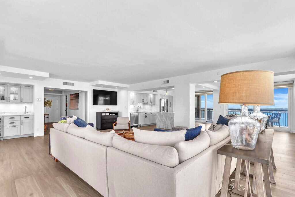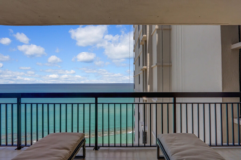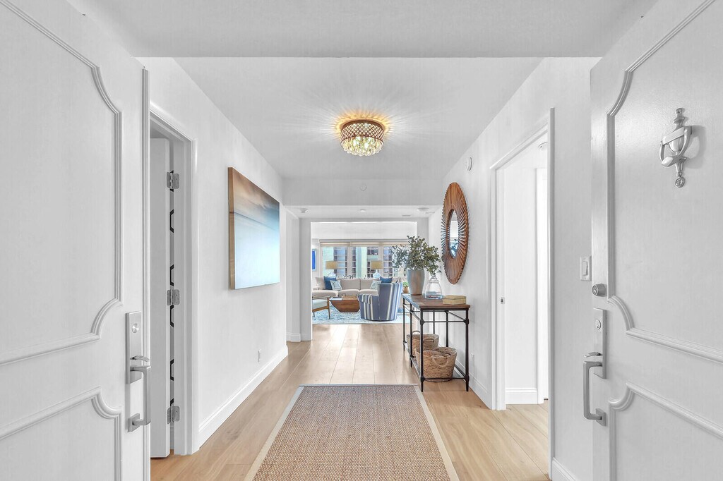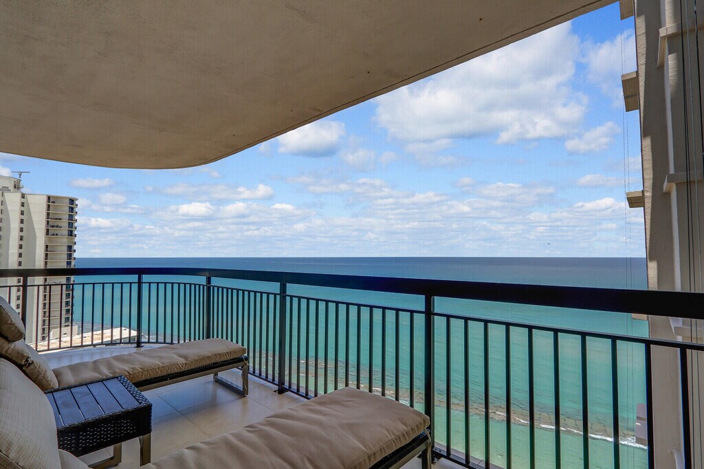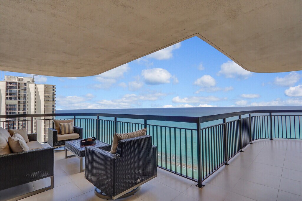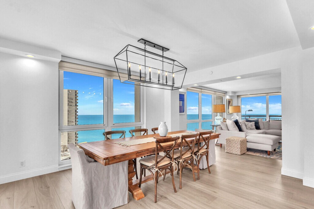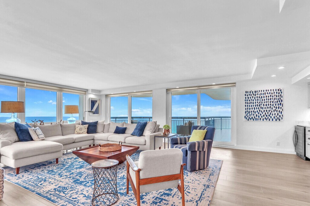 Forever direct Ocean and Intracoastal views from every room of this recently renovated 3 bedroom /3.5 bath unit located directly on the sand in Eastpointe II. This unit lives like a single-family home in the sky with over 2,614 living square feet and a total of 3,061 square feet. The gourmet kitchen was opened to the great room and was designed with an extra-large quartz island countertop and is the perfect spot to entertain your family and friends. Cooking is a breeze with your top-of-the-line Viking appliances including a double oven with warming drawer, wine cooler and a reverse osmosis water filtration system. No carpet here, 16x16 porcelain tile throughout and all the bathrooms have been updated. With its split floor and three