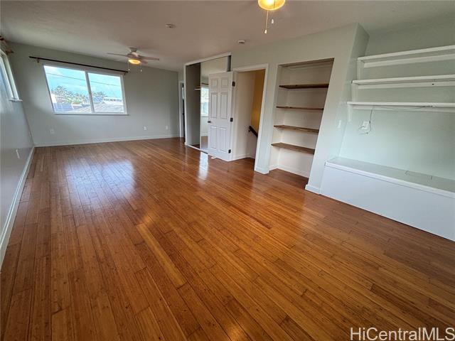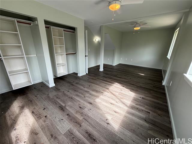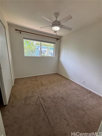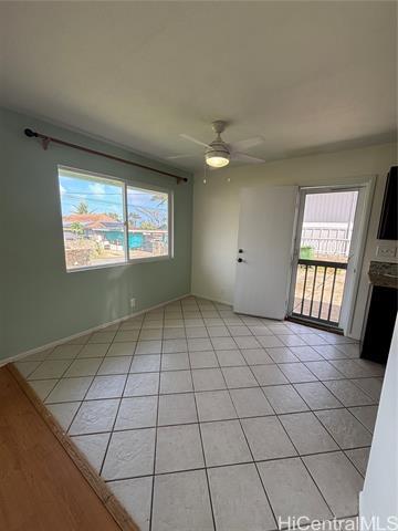 This spacious 1-bedroom, 1-bathroom upstairs duplex unit offers approx. 1,100 sq. ft. of comfortable living with ocean and mountain views. The home features a bright living area, a kitchen with a large pantry, and essential appliances including a range, refrigerator, and disposal. Each room has ceiling fans for added comfort, and the bedroom boasts a large walk-in closet. Convenience is enhanced with unitized laundry, and the property provides 2 tandem driveway parking spaces. Perfect for those seeking a serene, windward-side location with easy access to the beach, scenic trails, and local shops. 1 year lease. No smoking. Yard service is included. Pets negotiable. Correct TMK: 1-5-4-