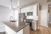 Don't miss this modern 2 bedroom, 2 full bathroom apartment with an impressive 20 ft wide living room, hardwood floors, recessed lighting, and central air! Located on the first floor of a duplex, you'll enter through a shared porch and into the open floor plan living room and kitchen that's complete with quartz counter tops, an island breakfast bar with designer lighting above, stylish back splash and stainless steel appliances. The first bathroom is located in the hallway and includes a sleek vanity and shower/tub with a sliding glass door. The first bedroom has a double closet and access to the small outside area, that's a great place to store trash or just keep the door open for some extra fresh air. The second bedroom features an en-suite bathroom with a standing glass shower and matching vanity as the first bathroom. The bedroom is bright, spacious and includes a double closet. The first floor tenants also have private access to unfinished basement for tons of storage plus the full size washer/dryer. Lease Terms: Generally, 1st month, and 1 month security deposit due at, or prior to, lease signing. Other terms may be required by Landlord such as last month’s rent upfront. $50 application fee per applicant. electricity, gas (if applicable), cable/internet and $10/mo technology fee. Water is a flat monthly fee of $75. $25 service fee plus cost of the air filter will be charged quarterly for routine air filter replacement. Landlord Requirements: Applicants to make 3x the monthly rent in verifiable gross income, credit history to be considered, no evictions within the past 5 years, and must have a verifiable rental history with on-time rental payments. Exceptions to this criteria may exist under the law and will be considered. Cosigners will be considered. *Pets negotiable, $500 non-refundable pet fee required.