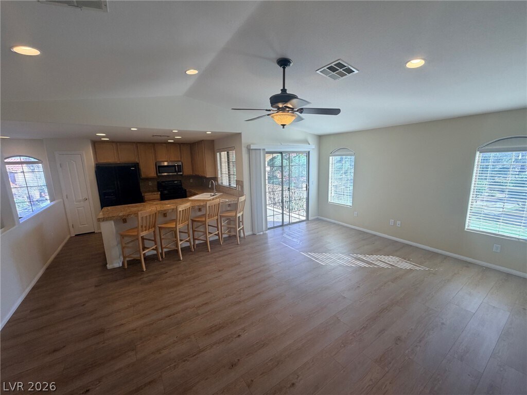 Discover this 2 bed, 2 bath Painted Desert home, located in a guard-gated community with roving security. The open living area features vaulted ceilings, LVP flooring and ceiling fans, while bedrooms are carpeted for added comfort. The kitchen offers stone countertops and a pantry, and the primary suite includes dual sinks and a walk-in closet. Step out to a balcony, use the attached single-car garage, and take advantage of on-site amenities including a community pool, spa, tennis and pickleball courts, racquetball court and golf access. Conveniently close to I-95, restaurants, shopping, schools and the Santa Fe Casino.