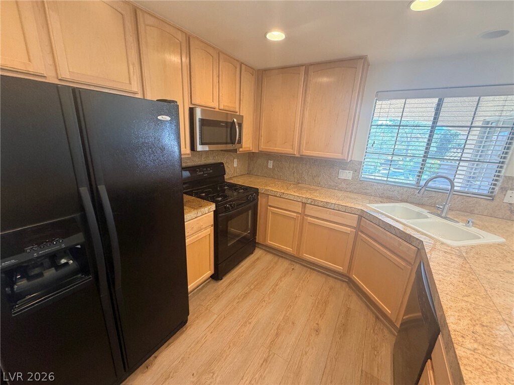Discover this 2 bed-2 bath home in Painted Desert’s guard-gated community in Las Vegas. The property provides access to community amenities including a pool, spa, tennis and pickleball courts, a racquetball court, golf facilities, and roving security, with CC&Rs in place. Conveniently located near the 95 freeway, restaurants, shopping, schools, and the Santa Fe Casino, this residence offers easy access to local attractions and recreational options. This spacious second floor unit has a living room with a balcony connected. Primary bathroom with dual sinks and tub/shower combo. Primary bedroom has a walk-in closet. Kitchen has gorgeous stone countertops with a pantry closet. Ceiling fans in both bedrooms and the living room. Laundry closet is conveniently located in the hallway. LVP flooring throughout the Living Room area and carpet in the bedrooms. Single car attached garage! MLS ID 2772067
