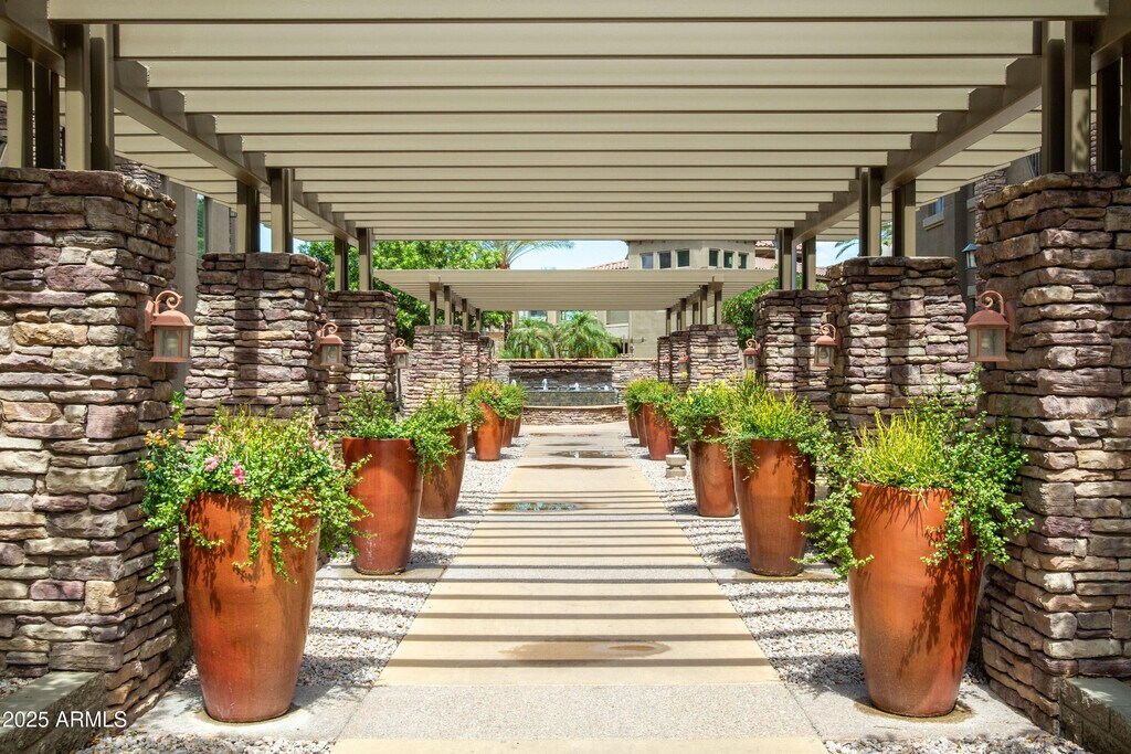Top-floor (3rd level) corner unit with abundant windows and natural light featuring a 2 bedroom,2 bath split-bedroom floor plan. One of the larger units in the community at 1,468 sq ft,this home offers luxury vinyl flooring,tile baths,and updated paint throughout. The primary suite includes a large walk-in shower and soaking tub. New white shutters are on order for all windows,and an invisible screen door opens to the patio. The home also includes a separate work area,generous dining space,and a well-appointed kitchen with quartz countertops,breakfast bar,and gas stove. Ideally located near High Street,City North,Desert Ridge Marketplace,seasonal Sunday farmers market,a new Sprouts coming soon,golf courses,Mayo Clinic,and with easy access to the 101 and 51 freeways. Toscana at Desert Ridge offers resort-style living with three heated pools and spas,steam room,sauna,showers,clubhouse,lifestyle director,concierge,two state-of-the-art fitness centers,billiards/game room,gourmet community kitchen,multiple indoor and outdoor gathering areas with BBQs,and a library.