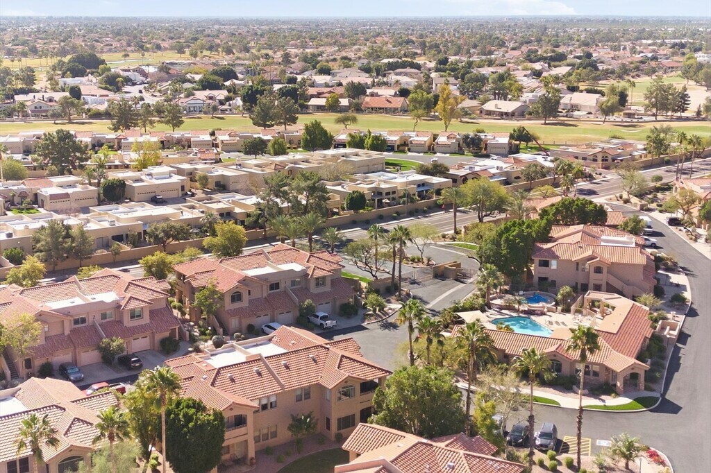 Enjoy resort-style living in this upstairs, modern condo featuring a desirable split floor plan with 3 bedrooms and 2 full baths on one level. The open-concept kitchen offers NEW appliances, a spacious breakfast bar, and flows seamlessly into the dining and living areas. The home has been freshly painted, upgraded with NEW carpet, and showcases modern finishes throughout; ready for immediate move-in. Additional highlights include an attached garage with interior stairway access, in-unit laundry with washer and dryer, ample storage, and blinds throughout. Located in a gated community with a heated pool, spa, fitness center, and clubhouse. Ideally situated near Loop 202, parks, golf, dining, and shopping. Stop by and see this exceptional place today!