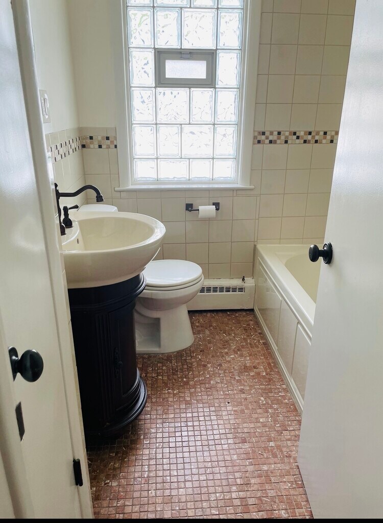 Baño recientemente remodelado. Calor y electricidad incluidos. Excelente luz natural. Amueblado a solicitud.