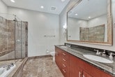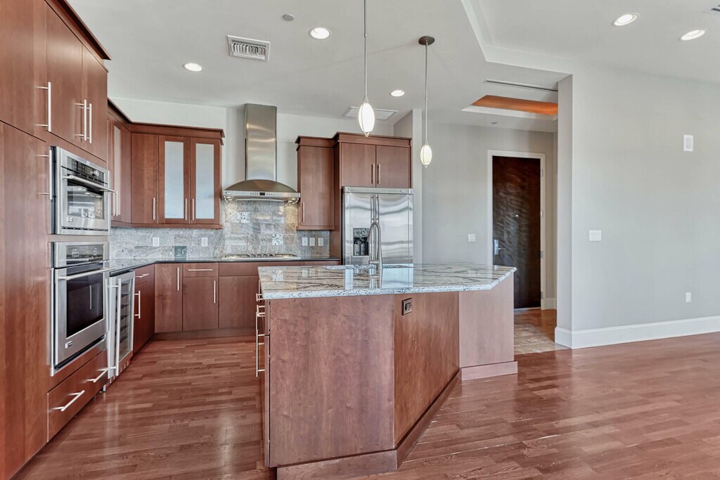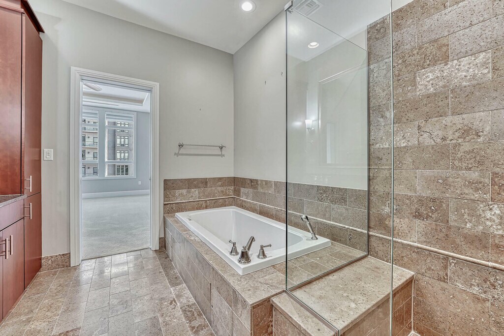 This beautifully appointed luxury rental will welcome you with open arms! A hard to find true 3 bedroom layout spanning almost 2100 SF, most of the home has been thoughtfully remodeled with leathered Taj Mahal quartzite countertops throughout, beautiful wide planked pecan flooring, app controlled electronic shades, updated cabinetry, triple paned windows for a quiet retreat, custom closets, luxury bedroom carpet and more. Upon entry into the foyer, you'll be drawn to the bright and airy open concept living area with warm pecan hardwood flooring, built-in cabinetry, gas fireplace with floor to ceiling quartz surround and updated lighting throughout. The kitchen features an eat-in bar, Viking appliances including a gas cooktop, and pantry for additional storage. One of the best layouts at The Landmark, the home features dual primary bedroom suites on opposite ends of the unit, with the true primary suite boasting a private balcony, oversized en-suite bath with a custom dual-sink vanity, beautiful marble backsplash, jetted soaking tub and an oversized walk-in closet. The other primary suite is spacious enough for a king bed and contains dual custom closets and an en-suite bath with single sink vanity and tub/shower combo. The centrally located 3rd bedroom, also boasts a custom closet and is generously sized for a bedroom or spacious office. Across the hall, you'll find a 3/4 bath that serves the bedroom or is a powder room for guests. To cap off the unit, you'll find a full laundry room with wine cooler and ample built-in storage. As a tenant of the Landmark, you enjoy all of the benefits of an owner including luxury amenities like concierge, pools, spas, sauna/steam, gyms, business centers, theater room and more. Steps outside your door you'll find just about every cuisine your heart can desire, salons, workout facilities like Cyclebar, a coffee shop and movie theater. You'll love calling this unit home and all of the modern luxuries life at The Landmark affords!