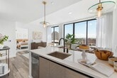 55 Jordan is a 267-unit rental apartment complex in Journal Square. This stunning 1 bedroom 1 bathroom apartment with NORTH exposure looks out into Journal Square. The beautifully designed kitchen features tons of storage, all new stainless-steel appliances and open shelving. --- Amenities include a secure attended lobby with a full-time doorman, spacious rooftop terrace with BBQ stations, a dog run & plenty of chairs, tables & lounge chairs. The second-floor lounge includes a pool table, sofa with large flat screen TV, a record player with plenty of records to choose from & a foosball table. Our 2 fully equipped fitness centers have everything you need from cardio machines to strength training & even a yoga room. Last but certainly not least is our business center/co-working space with conference rooms for privacy & a large table with charging stations to spread out and get all your work done. We also have a large laundry room with lots of washers & dryers for tenants. In unit W/D is an available upgrade for all apartments. Wi-Fi is provided in ALL the amenity spaces. --- Easy access to Manhattan and elsewhere is nearby at the Journal Square Transportation Center, with PATH train service into both Lower and Midtown Manhattan. The Transportation Center’s bus station provides bus service into New York City and many New Jersey locations, including Newark Liberty International Airport.