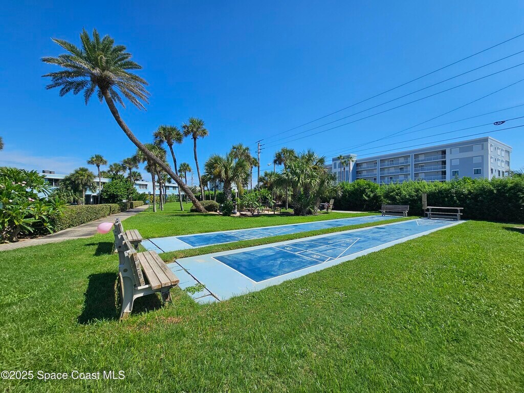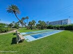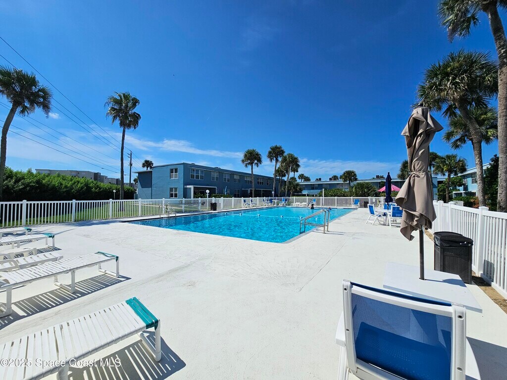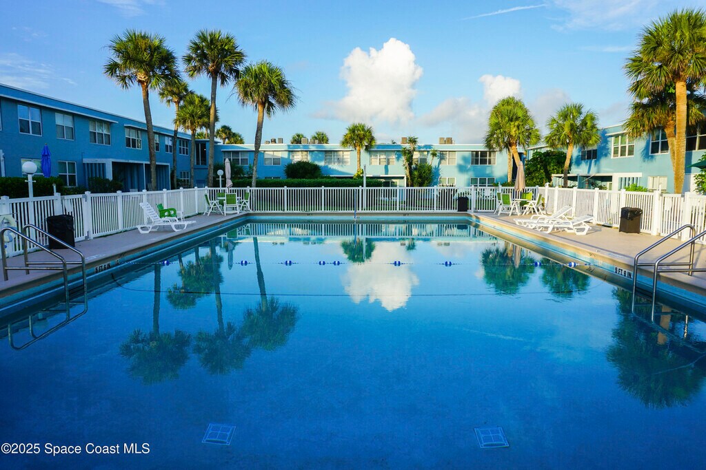 Whats not to love about this beautiful poolside 1 bedroom 1 bath condo. Very clean and Light and bright! Walk across the street to the beach! Hear the waves from your large porch. Full kitchen. Beautiful terrazzo floors. First floor unit,over looks pool,shuffleboard,community room and green space. Close to Space Force Base,shopping and restaurants. Pet free Community.