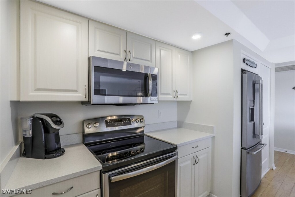 Enjoy extra sunlight in this Southwest facing 2 bedroom plus den/ 2 bath end unit. The den is currently set up as the third bedroom. The condo has a true beachy feel with light plank floors,neutral colors,and a tropical mixture of light and dark wood furnishings. Work from home,entertain guests,or just enjoy Pelican Bay...the tram/boardwalk is just out your back door. Many beautiful updates to both bathrooms and the kitchen add to the easy living and comfort of this home. St Tropez is close to restaurants,entertainment,and all the Pelican Bay amenities.