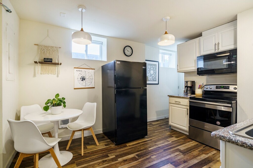 La unidad de tres dormitorios, un baño (más habitación adicional) completamente decorada y bien equipada está disponible en este dúplex NE, ubicado cerca de 84, Providence Medical Center y a corta distancia del centro de la ciudad. También cerca de restaurantes, cafeterías, distritos de Laurelhurst y Hollywood y parques del vecindario. La espaciosa unidad del sótano en el dúplex tiene su propio patio con vallas (se aceptan mascotas). Conviértalo en su hogar. Se admiten mascotas. No fumar. Depósito de garantía de 1 mes. Todos los servicios públicos incluidos (Wi-Fi de alta velocidad, agua/alcantarillado, gas, electricidad, basura/reciclaje, Netflix, Amazon Prime). Se requiere solicitud y verificación de crédito y antecedentes.