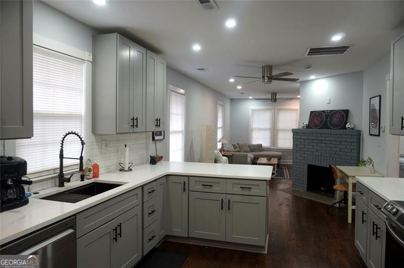 Welcome to this beautifully updated 2-bedroom, 1-bath home in the heart of Atlanta's sought-after West End! Featuring an open-concept layout, this home boasts a modern kitchen with quartz countertops, stainless steel appliances, and ample cabinet space. The spacious living area is perfect for entertaining, complete with large windows for natural light and a cozy decorative fireplace. Both bedrooms are generously sized, and the bathroom offers stylish finishes with a clean, contemporary design. Hardwood floors flow throughout, enhanced by recessed lighting and a fresh, neutral color palette. Conveniently located near the BeltLine, shopping, dining, and public transit, this move-in-ready rental offers the perfect blend of comfort and city living. Furniture is available to remain for tenant use if desired.