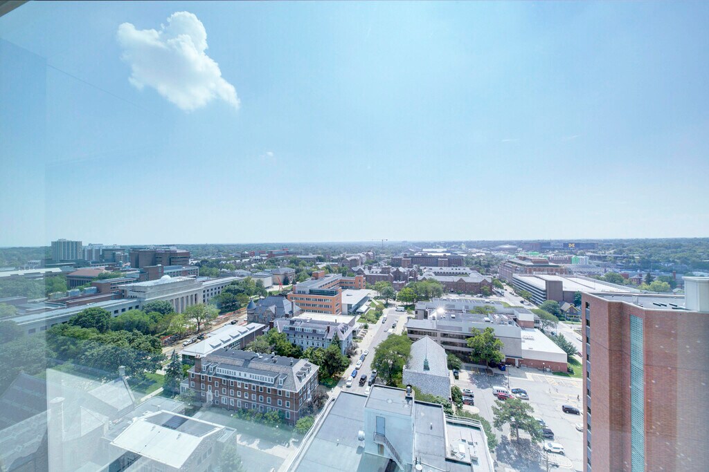 Brian Tomsic20th floor Beautiful newly renovated furnished Grand Studio with magnificent view of UM Campus and the Big House. Great location one block from UM. Campus. Quiet secure building with 24hour security, soundproof walls, on site laundry, storage, maintenance staff. Parking available.
